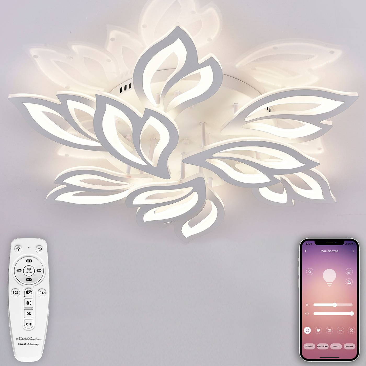 Люстра Natali Kovaltseva LED LAMPS 81226 серии LED LAMPS. Подчеркнет стиль помещения. Размеры 80x80x13 cm. Плафон акриловый белого цвета, а материал/цвет арматуры металл/белый. Имеются встроенные светодиодные лампы, рассчитанные на весь срок службы светильника. Идеально подходит для гостиной. Страна происхождения бренда — ГЕРМАНИЯ. Вес с упаковкой 3.6 kg