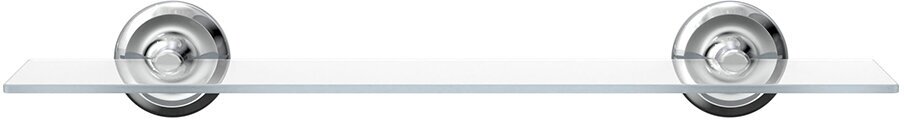 Традиционная стеклянная полка — один из самых популярных предметов интерьера ванной комнаты. Этот функциональный аксессуар представлен в современном дизайне. Полка изготовлена из прочного стекла. Мягкие линии закругленных углов делают ее особенно привлекательной и безопасной. Настенные крепления с хромовым покрытием не подвержены воздействию влаги и украшают полку глянцевым блеском. Особенностью является оригинальная форма розетки, которая символизирует волны расходящиеся от упавшей капли воды.