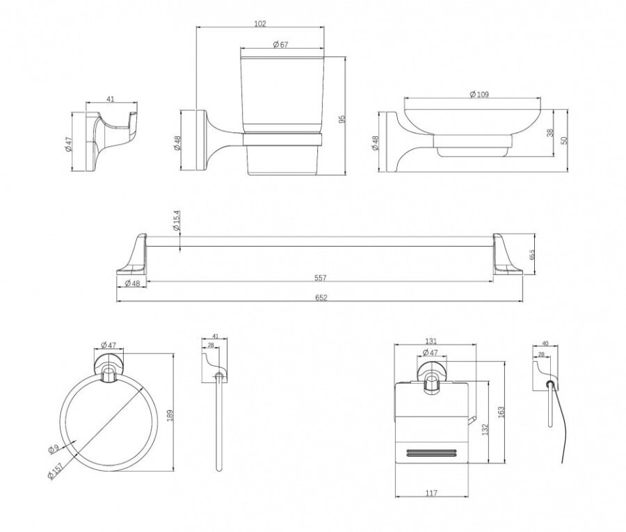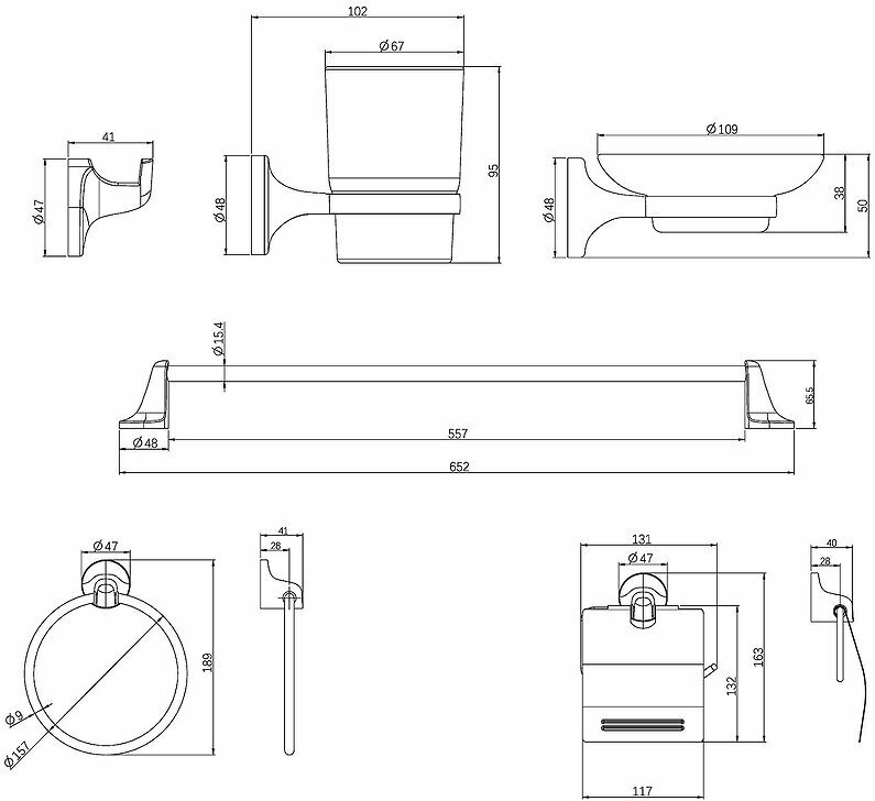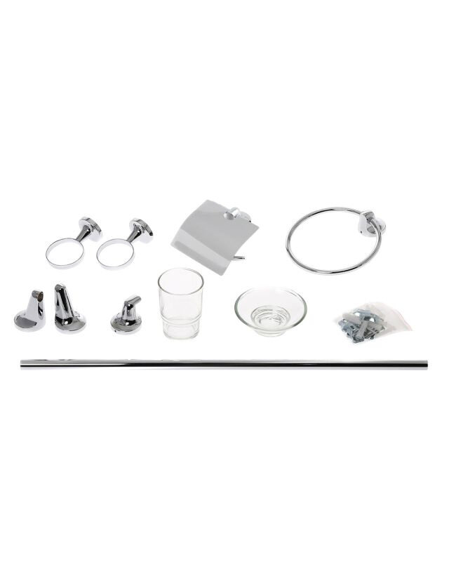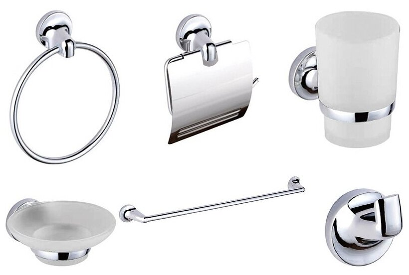| Состав набора | полотенцедержатель; держатель для туалетной бумаги; мыльница; стакан для зубных щеток; крючок |