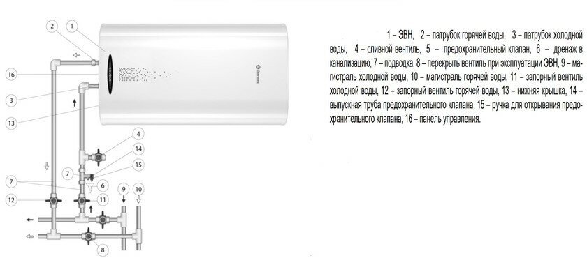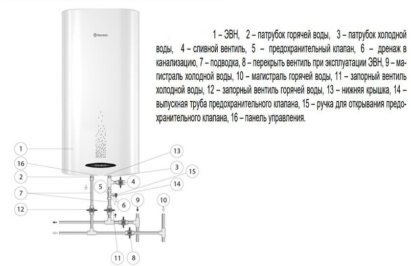 Накопительный электронагреватель Thermex (Термекс) рекомендуется устанавливать как можно ближе к месту использования горячей воды, чтобы уменьшить потери тепла в трубах. Несмотря на компактные размеры и малый вес без жидкости, при заполнении водой устройство значительно утяжеляется, поэтому его необходимо фиксировать с помощью крючков, анкеров.