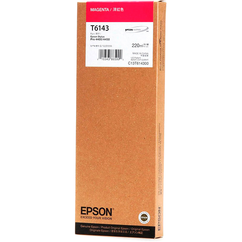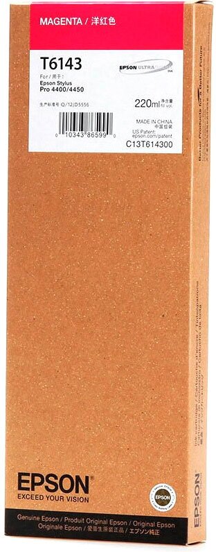 Струйный картридж Epson T6143 подходит для аппаратов Epson Stylus PRO 4450. Линейка этих аппаратов, как правило используется в домашних условиях для качественной и недорогой монохромной и цветной печати. Фотографии, цветные иллюстрации, черно-белые или цветные изображения - со всеми подобными задачами эти принтеры справляются безупречно. Относительно невысокая стоимость принтеров и расходных материалов к ним является дополнительным преимуществом. Пурпурный картридж Epson T6143 рассчитан на 220 мл.