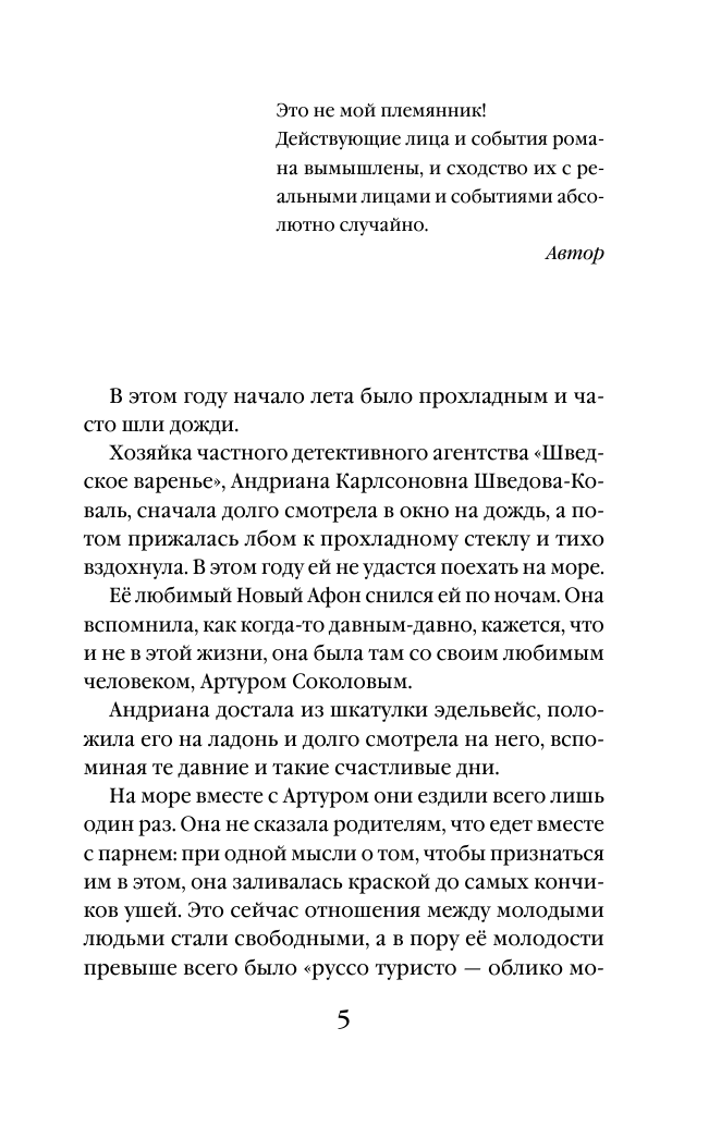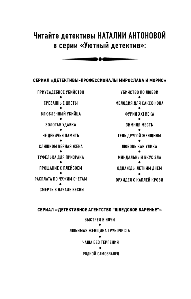 интересная детективная история, которая будет держать в напряжении до конца своих страниц. книга, которую легко можно прочитать за вечер. сюжет истории правда затягивает, хочется читать, не отрываясь. все моменты четко и хорошо прописаны. хочется порекомендовать эту книгу, как и все остальные книги Наталии Антоновой, к прочтению. прочитайте, точно не пожалеете!