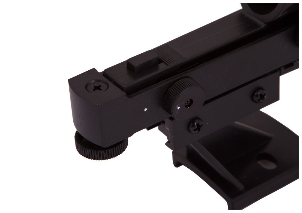 Искатель устанавливается на оптическую трубу при помощи винтового крепления. Кроме того, можно использовать пластину «ласточкин хвост». Юстировочные винты позволяют отрегулировать положение искателя так, чтобы он б