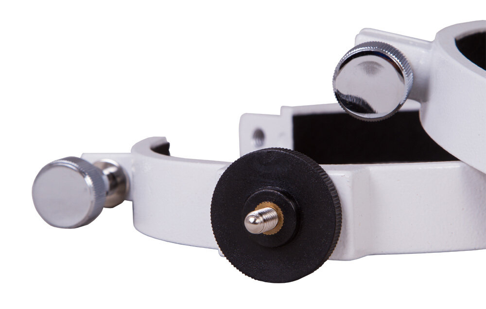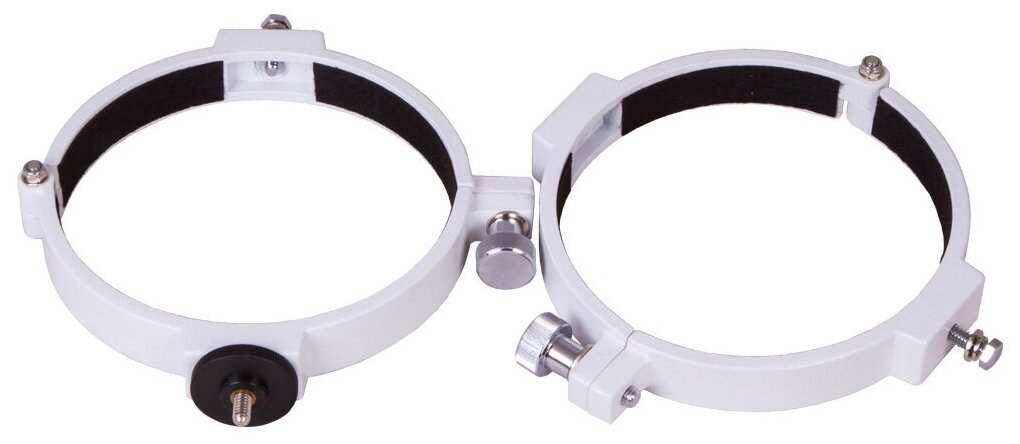 Набор крепежных колец Sky-Watcher предназначен для фиксирования оптических труб рефракторов на любых монтировках с креплением 1/4” или с креплением «ласточкин хвост». Диаметр объектива рефрактора должен составлять 150 мм. Оба кольца сделаны из металла, поэтому долговечны и надежны. Силу крепежа можно регулировать. На одном из колец есть крепление для фиксирования фотооборудования.
