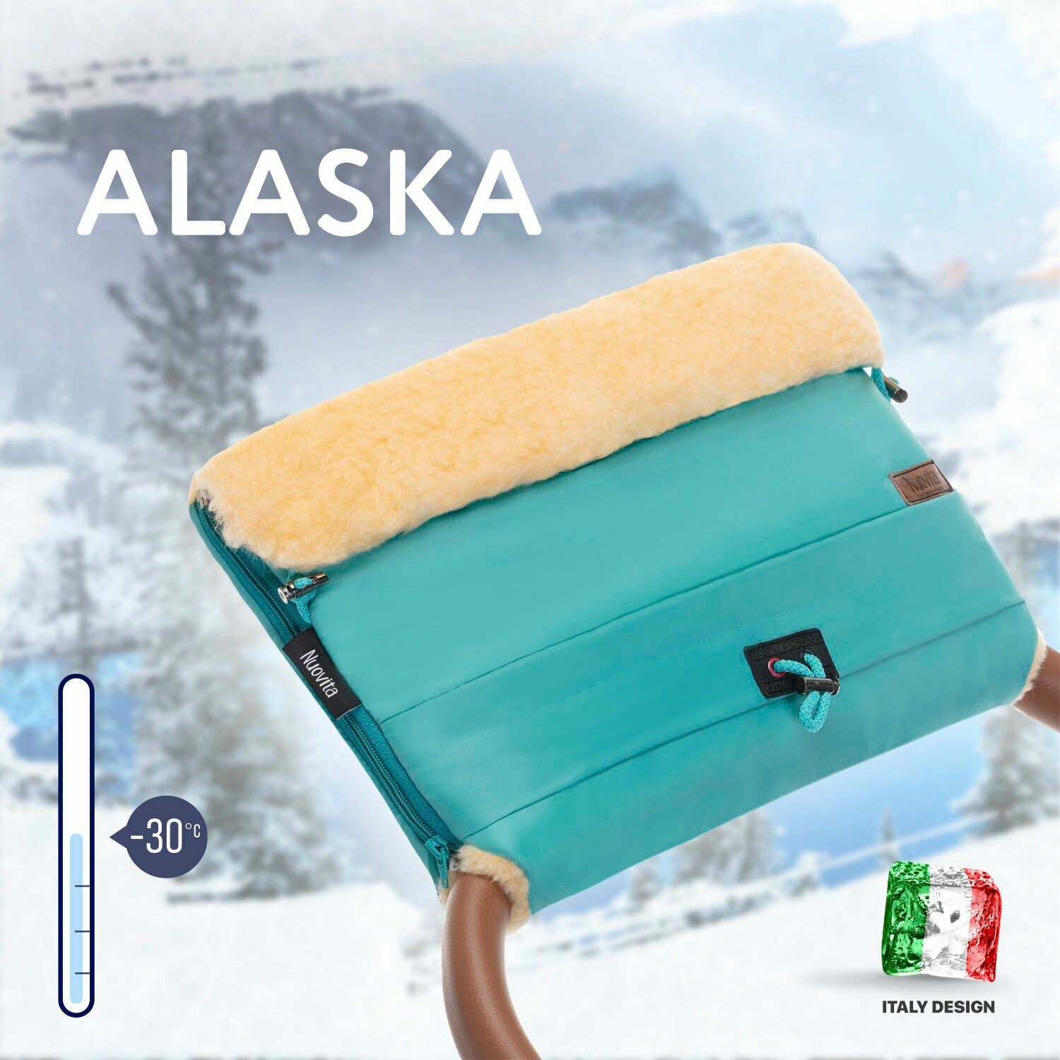 Меховая муфта Nuovita Alaska - эффектный и практичный аксессуар для коляски, незаменимый в зимних условиях. Удобная и теплая муфта универсальна и подходит как для мужских, так и для женских рук. Ее можно использовать с колясками и санками всех типов, имеющими сплошную ручку. Изделие состоит из 3-х слоев. Внутренний слой - это смесовая овечья шерсть на тканой основе, имеющая высокий пушистый ворс высотой 12мм. Красивый, легкий мех обладает всеми достоинствами овечьей шерсти — гигроскопичностью, воздухопрониц
