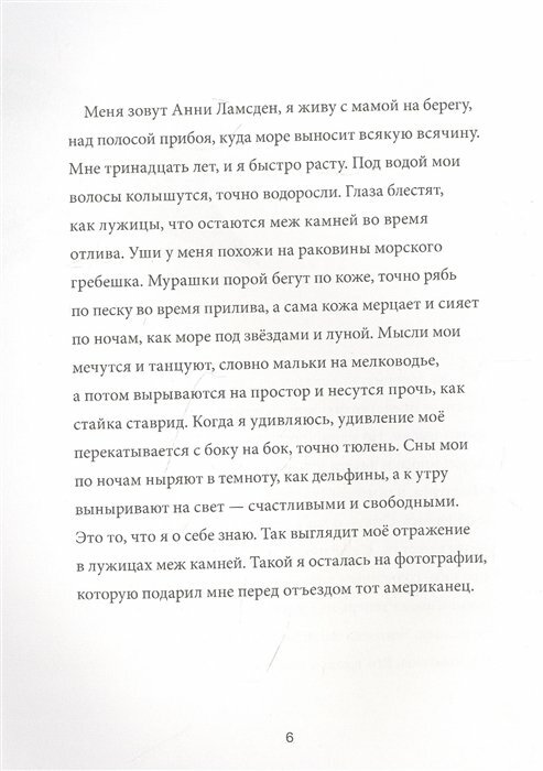 Анни Ламсден не похожа на других. Мама пробовала водить её в школу, но буквы и цифры не слушаются девочку. Зато она здорово плавает и целые дни проводит у моря, на Ступорском пляже. Иногда Анни кажется, что ей стоило родиться рыбой. А вдруг она и вправду рыба?