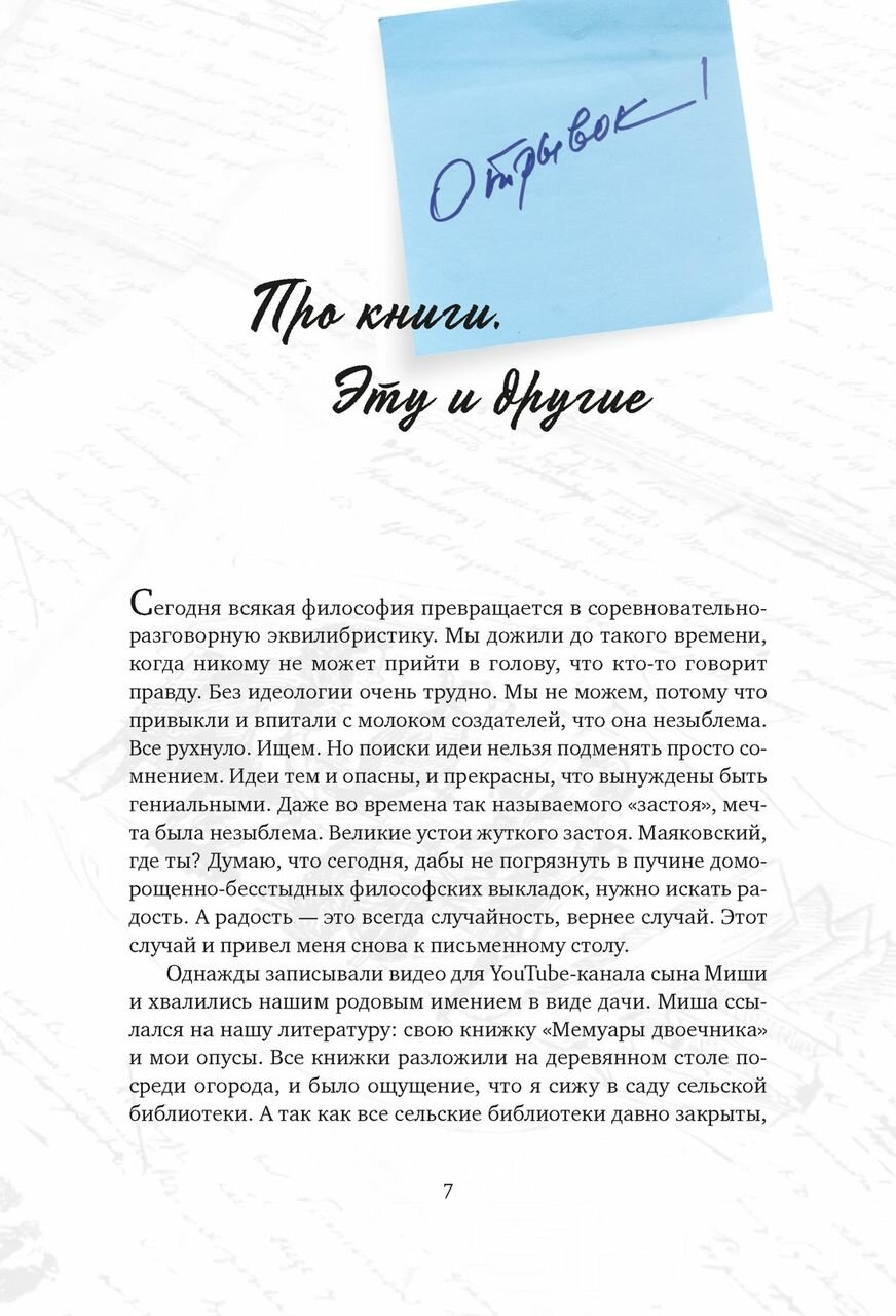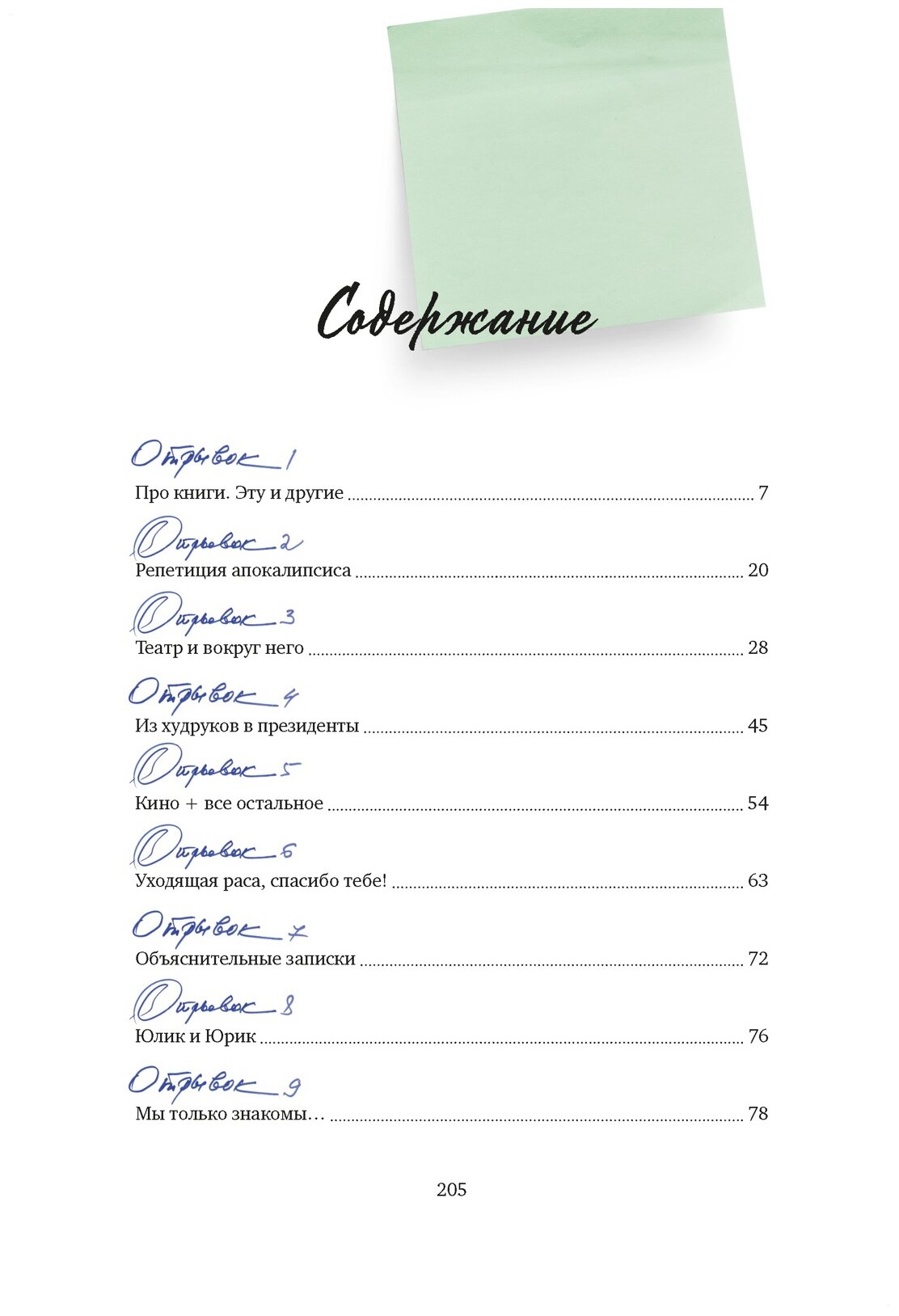 Обращается Ширвиндт и к своим воспоминаниям: учебе в школе и преподавании в Театральном институте имени Щукина; работе над спектаклями и съемках в любимых всеми фильмах. Непревзойденный рассказчик, автор делится удивительными историями о коллегах и друзьях, вспоминает Олега Табакова и Марка Захарова, Андрея Миронова и Людмилу Гурченко, Михаила Жванецкого и Булата Окуджаву, Владимира Меньшова и Валентина Гафта, Михаила Державина и Зиновия Гердта.