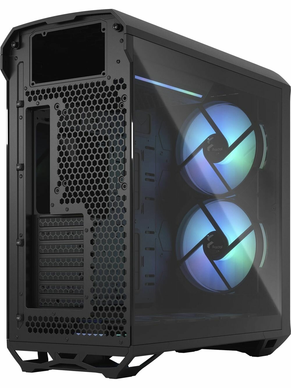 Корпус Fractal Design Black RGB TG Light Tint [FD-C-TOR1A-04] относится к формату Full-Tower, что позволяет внутри него разместить огромное количество игровых или рабочих компонентов. Пластик, сталь и стекло в основе конструкции являются залогом его прочности. С 2 боков корпуса у него есть окна из закаленного стекла. Многоцветную подсветку видно через решетку, которая выступает лицевой панелью. Боковые панели корпуса Fractal Design Black RGB TG Light Tint [FD-C-TOR1A-04] фиксируются на защелки. Также внутри предусмотрен пылевой фильтр.