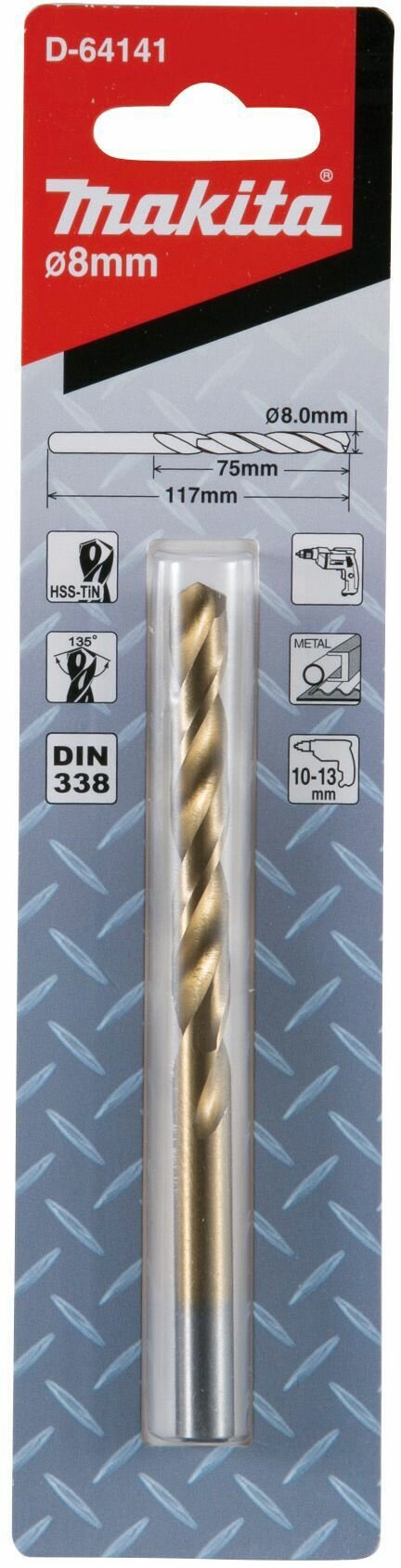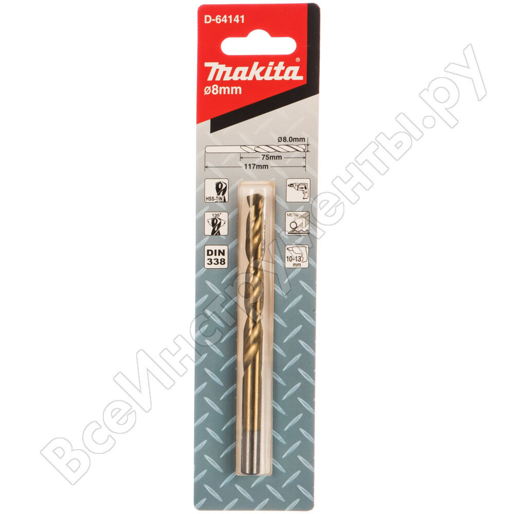 Сверло Makita по металлу 8мм цилиндрический 1шт D-64141