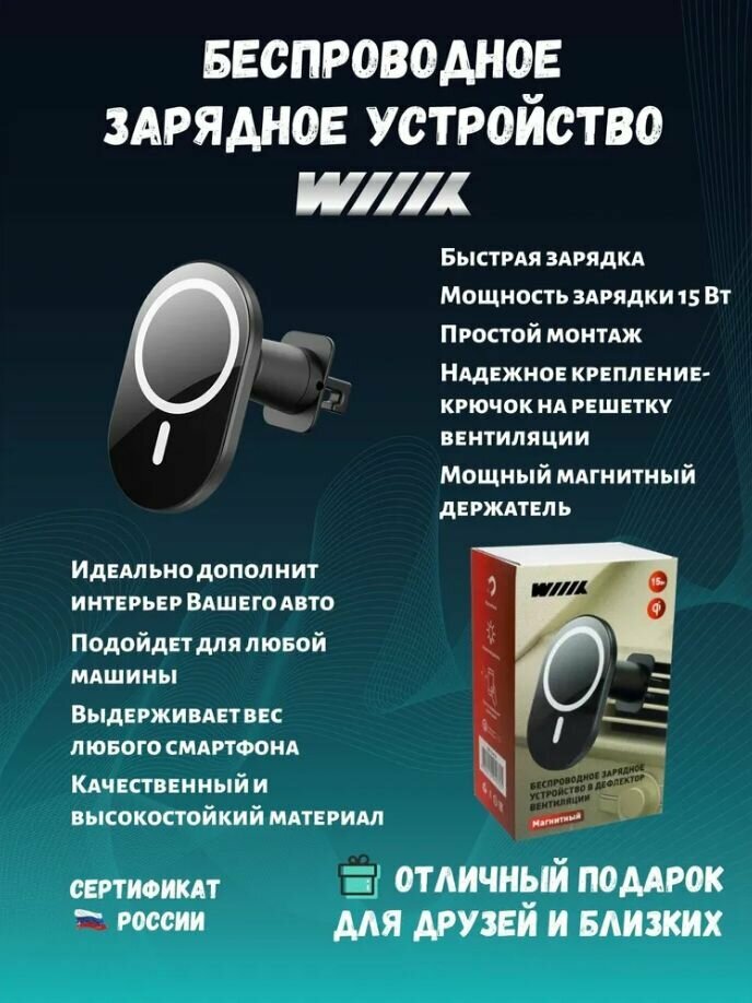 Держатель Wiiix для смартфонов магнитный беспроводная зарядка черный/серый CW-74V-B