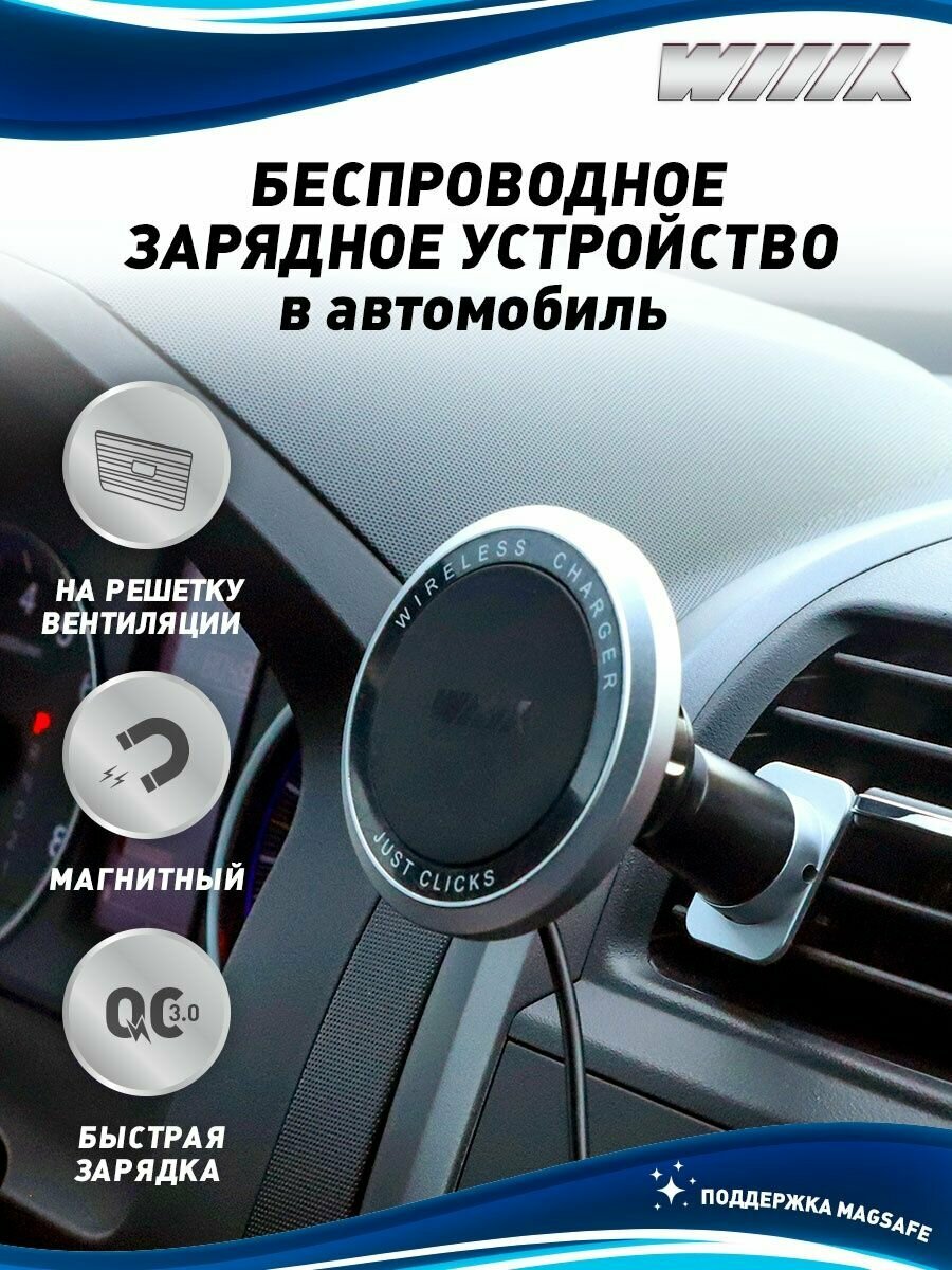 Держатель Wiiix для смартфонов магнитный беспроводная зарядка черный/серый CW-71V