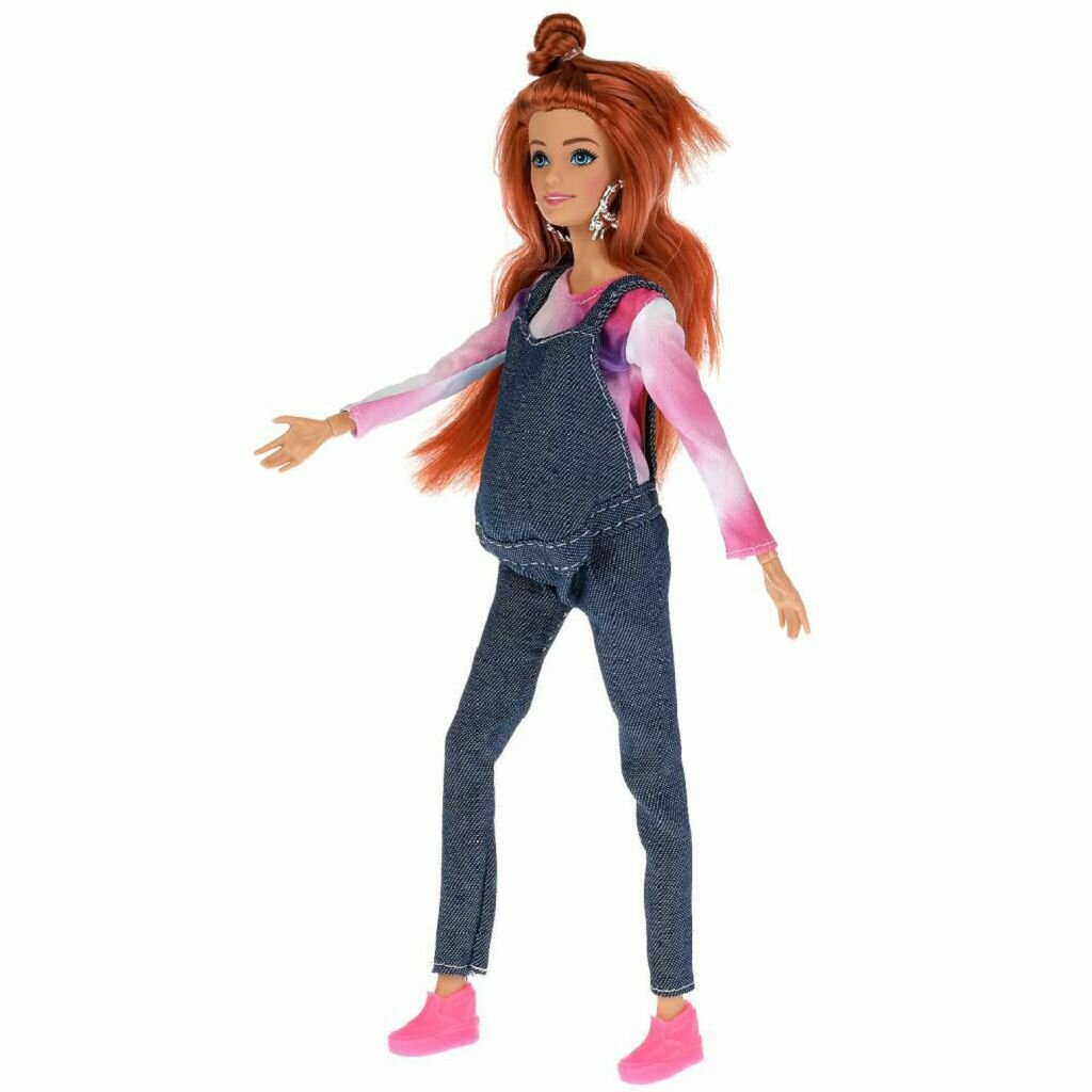 Будущая мама София одета в удобный джинсовый комбинезон и стильный свитшот. Образ куколки дополняет элегантная сумочка. Одежду и аксессуары легко снять и надеть. С такой модной куклой девочке будет интересно и весело играть: благодаря тому, что руки и ноги куклы подвижны, им можно придать любое положение. У Софии длинные красивые волосы, которые хозяйка куклы сможет заплетать в разные причёски. Детально проработанный дизайн игрушки вдохновит девочку на новые игровые сюжеты.