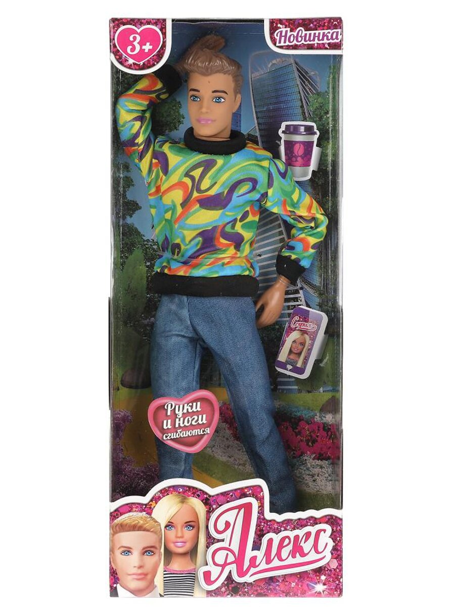 Стильный Алекс, друг Софии, одет в модную принтованную толстовку с высоким воротом и удобные джинсы. Одежду легко снять и надеть. С такой модной куклой девочке будет интересно и весело играть: благодаря тому, что руки и ноги куклы подвижны, им можно придать любое положение. Детально проработанный дизайн игрушки вдохновит девочку на новые игровые сюжеты.