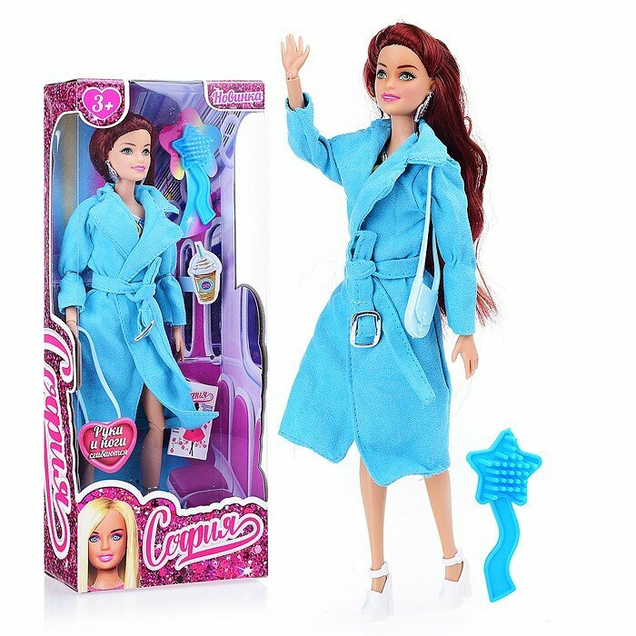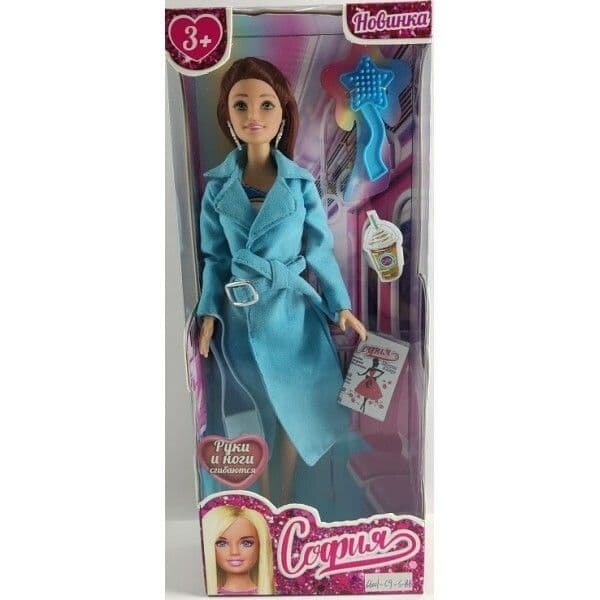 Модница София одета в стильное ярко-голубое пальто с поясом и английским воротником, образ дополняют крупные серьги. Одежду и аксессуары легко снять и надеть. С такой модной куклой девочке будет интересно и весело играть: благодаря тому, что руки и ноги куклы подвижны, им можно придать любое положение. У Софии длинные красивые волосы, которые хозяйка куклы может заплетать в разные причёски. Детально проработанный дизайн игрушки вдохновит девочку на новые игровые сюжеты.