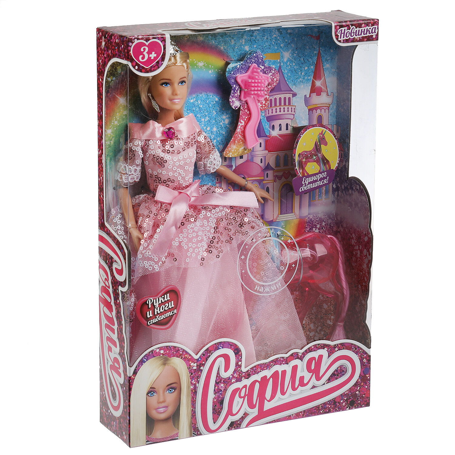 Прекрасная София одета в нарядное розовое платье с декором из пайеток, образ дополняют сверкающая корона и стильные серьги. Одежду и аксессуары легко снять и надеть. С такой модной куклой девочке будет интересно и весело играть: благодаря тому, что руки и ноги куклы подвижны, им можно придать любое положение. У Софии длинные красивые волосы, которые хозяйка куклы может заплетать в разные причёски. Детально проработанный дизайн игрушки вдохновит девочку на новые игровые сюжеты.