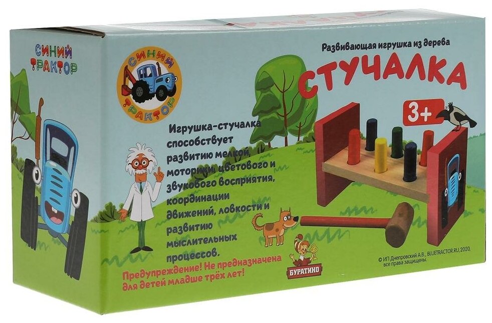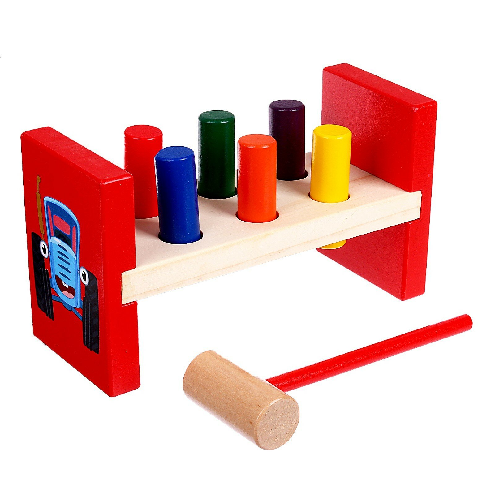 Деревянная игрушка Буратино Синий трактор Стучалка