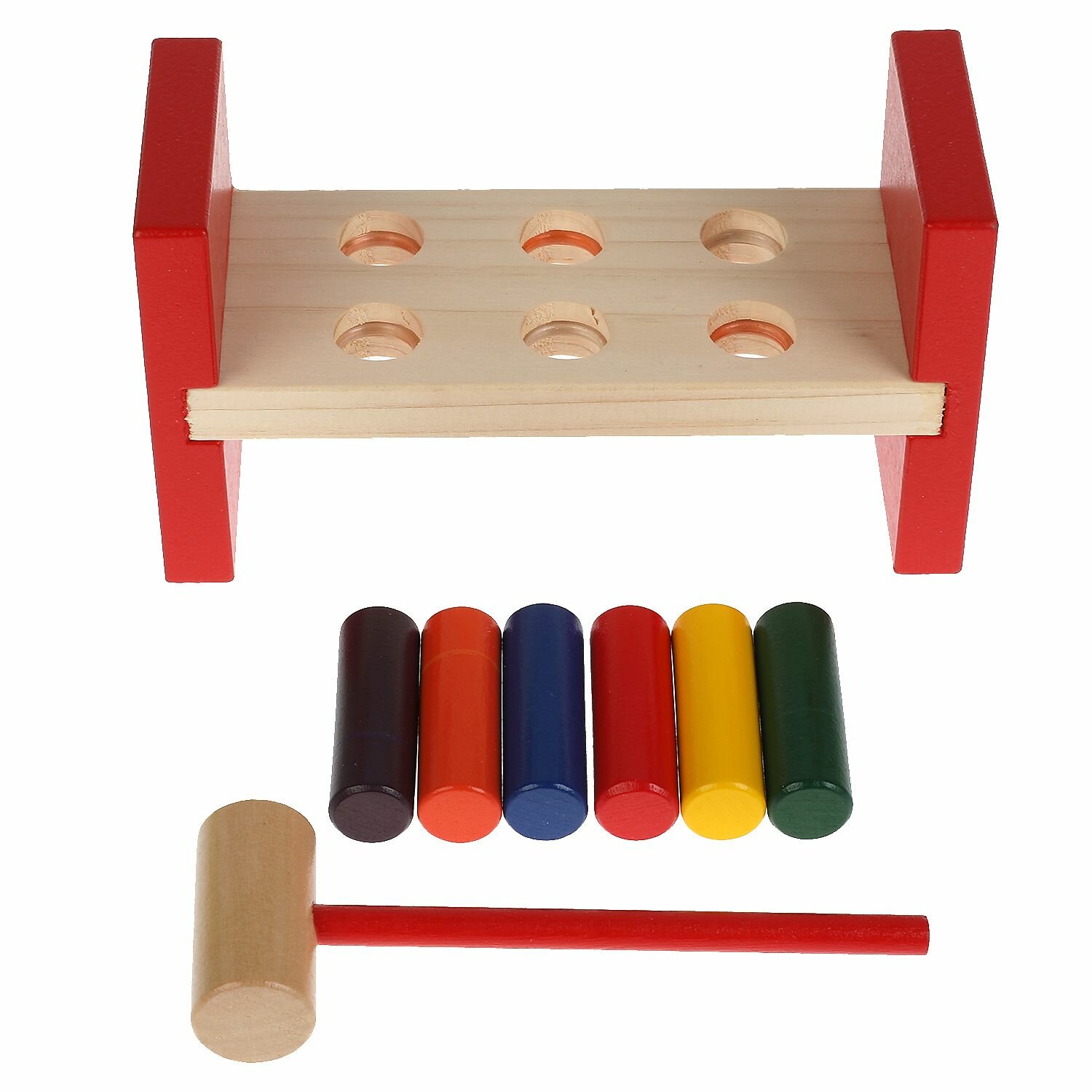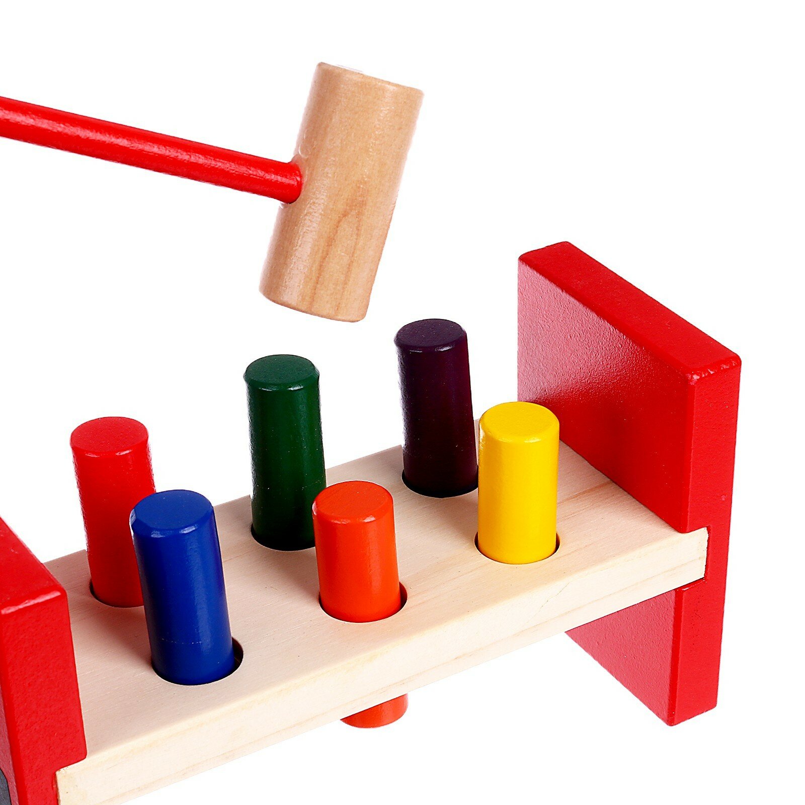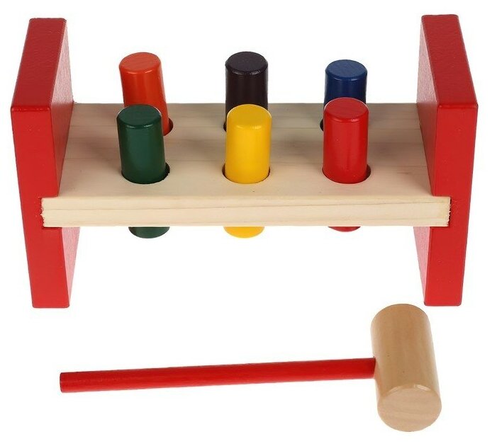 Эта яркая игра увлечёт малыша и познакомит его с основными цветами, поможет развить первоначальные навыки счёта. Играть в неё очень просто, нужно стучать молоточком по цилиндрам и «забивать» их в специальные углубления.