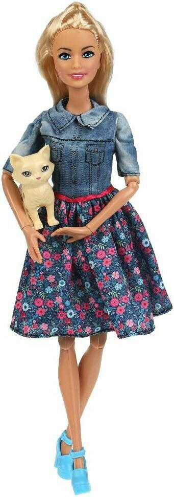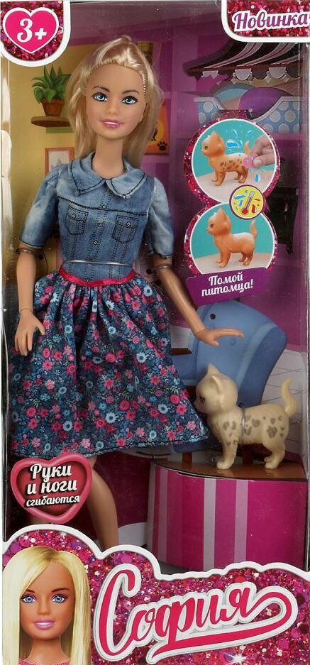 Модница София одета в стильное платье с верхом, стилизованным под приталенную джинсовку, пышной юбкой с цветочным принтом и поясом - лентой. Одежду легко снять и надеть. С такой модной куклой девочке будет интересно и весело играть: благодаря тому, что руки и ноги куклы подвижны, им можно придать любое положение. У Софии длинные красивые волосы, которые хозяйка куклы сможет заплетать в разные причёски. Детально проработанный дизайн игрушки вдохновит девочку на новые игровые сюжеты.