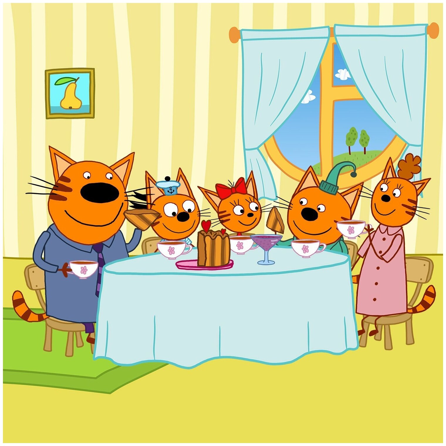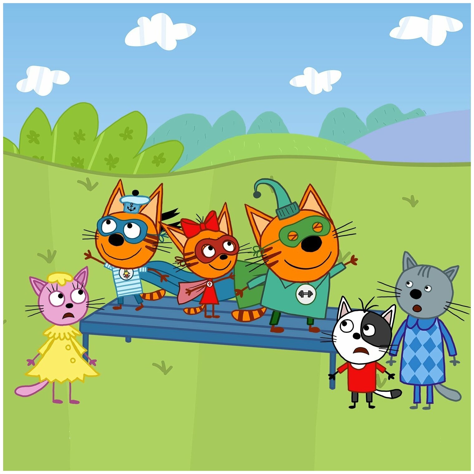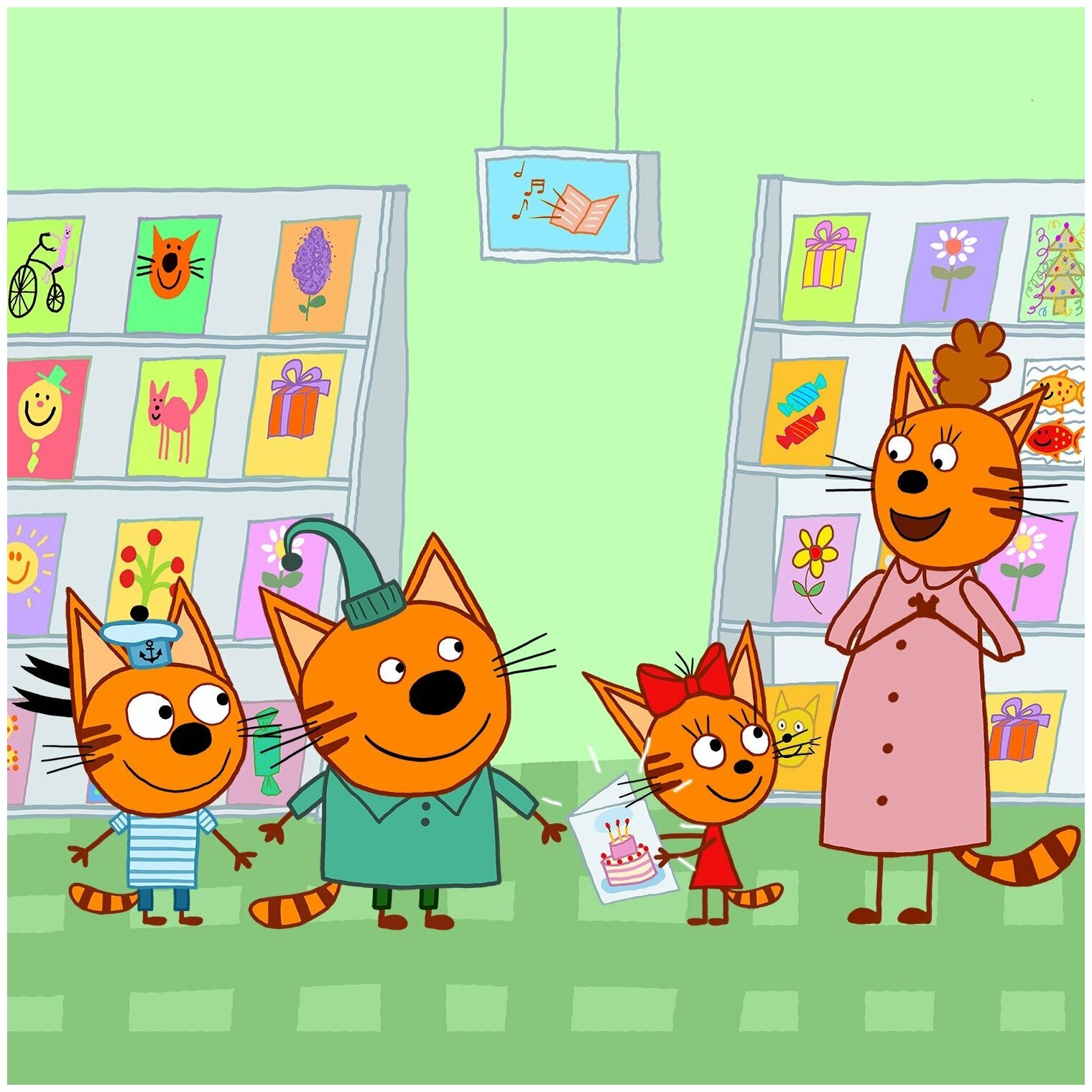 - Три кота. Карамелька, Компот, Коржик, папа Кот и мама Кошка. Мягкие игрушки
