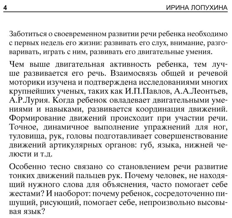 Ирина Лопухина - автор многочисленных книг по логопедии. Данная книга посвящена популярнейшему в мире направлению в логопедии - комплексному развитию речи, мышления и ритмики ребенка. Упражнения, приведенные в книге, помогут детям на фоне игровых движений скорректировать дефекты речи и, наоборот, основываясь на ритмике стихов, развить подвижность пальцев, координацию движений, эмоциональность, мышление. Основу книги составляют стихи, написанные автором за многие годы занятий с детьми, готовящимися к школе. Упражнения сопровождаются множеством картинок и фотографий. Книга рассчитана на логопедов, воспитателей дошкольных учреждений и родителей.