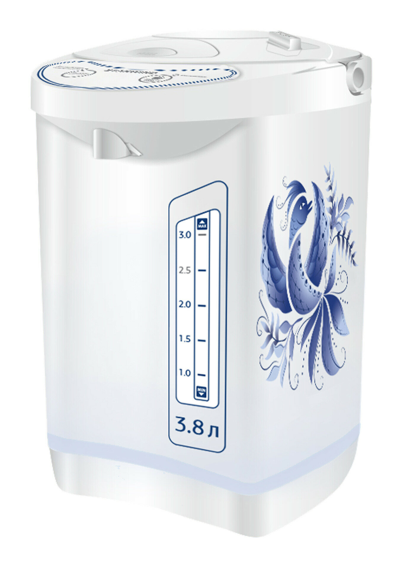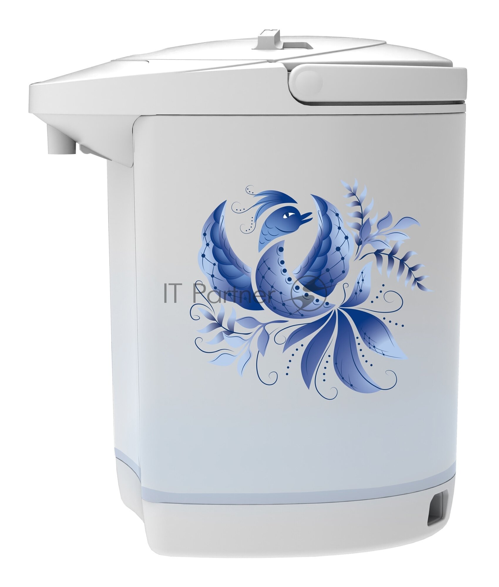 Термопот стал нужным предметом на кухне. С его помощью в любое время можно моментально получить чашку горячего напитка на свой вкус. Представленная модель отличается интересным дизайном. Бело-голубая цветовая гамма дополнена фантазийным растительным рисунком. Такой предмет станет настоящим украшением любой кухни. Есть 2 температурных режима. Возможность поворота устройства на 360 градусов. При доливе свежей воды возможно повторное кипячение. Безопасность обеспечивается с помощью автоматического отключения при перегреве. При изготовлении основной части корпуса и колбы использована нержавеющая сталь, что значительно продлит срок службы устройства. Скрытый нагревательный элемент надежно защищен от накипи, так как не имеет контакта с водой. Автоматическое отключение гарантирует безопасность использования.
