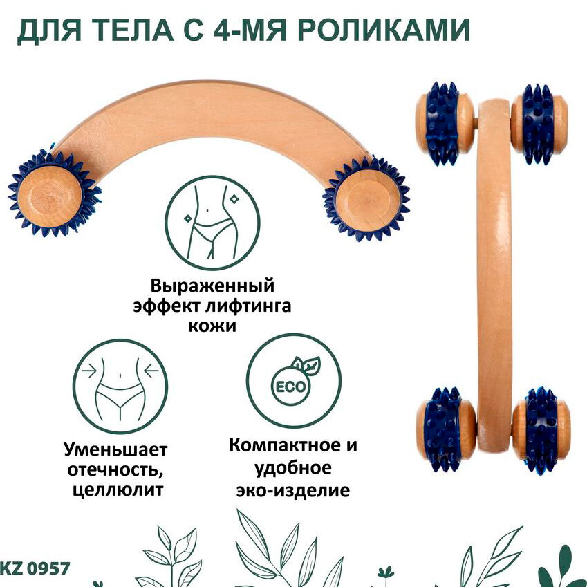 Деревянный механический массажер для тела с четырьмя роликами — универсальный и эффективный способ снять усталость, повысить упругость, тонус кожи, скорректировать фигуру в домашних условиях.