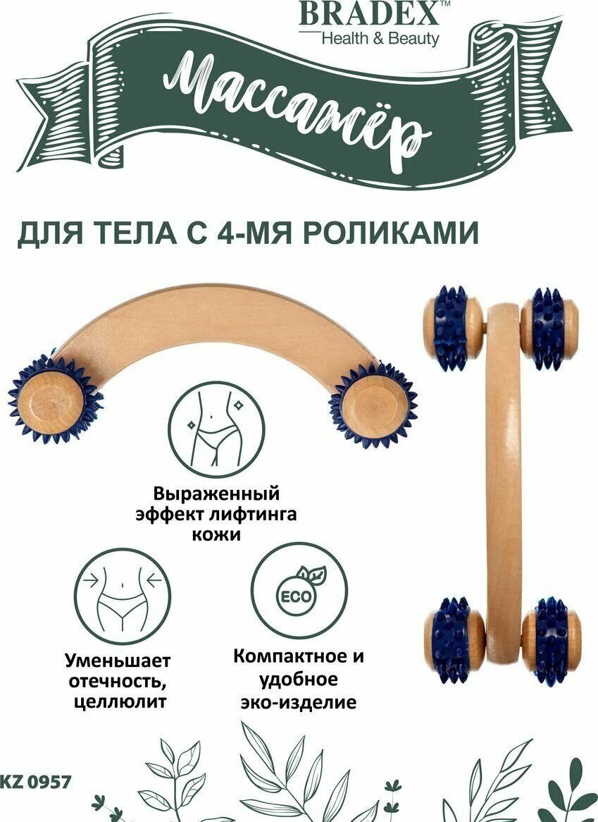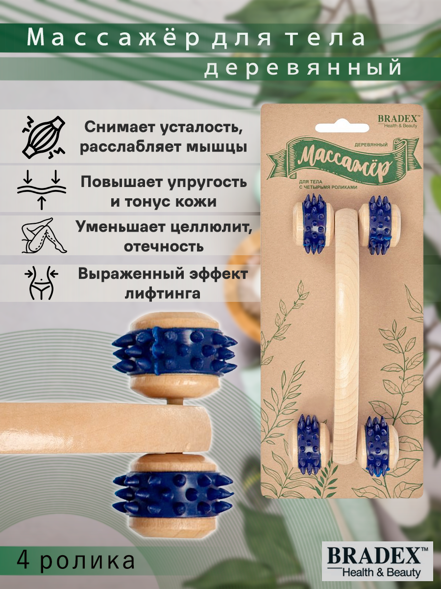 - Bradex KZ 0957; KZ 0958 Деревянный массажёр для тела с тремя и с 4-мя роликами