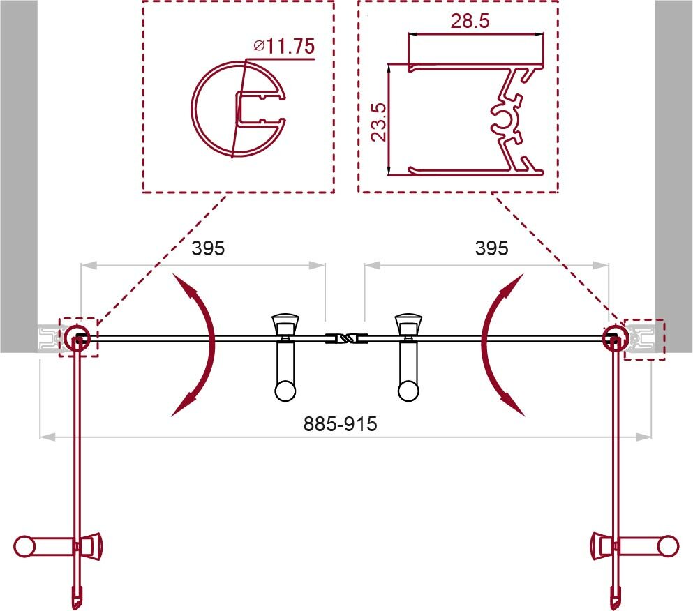 - Регулировка ширины предусмотрена за счет боковых профилей, что позволяет без проблем установить изделие даже при кривизне стен.