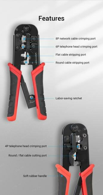 | Работа с разъемами/кабелем/контактами | RJ45/RJ14/RJ12/RJ11 |
