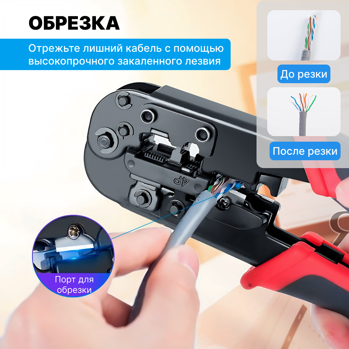 | Работа с разъемами/кабелем/контактами | RJ45/RJ14/RJ12/RJ11 |