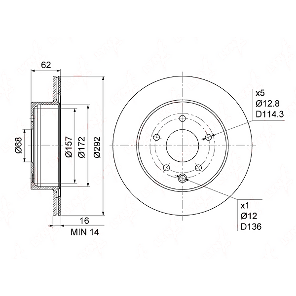Диск тормозной задний (292x16)Оригинальные номерa (OEM): 0986479453, 0986479S31, 09896920, 09896921, 17632, 200252320, 202261.