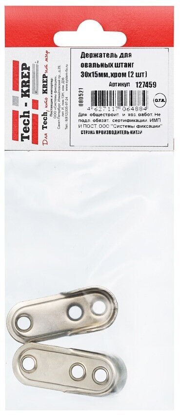 Держатель для овальных штанг Tech-Krep 30х15мм хром (2 шт)