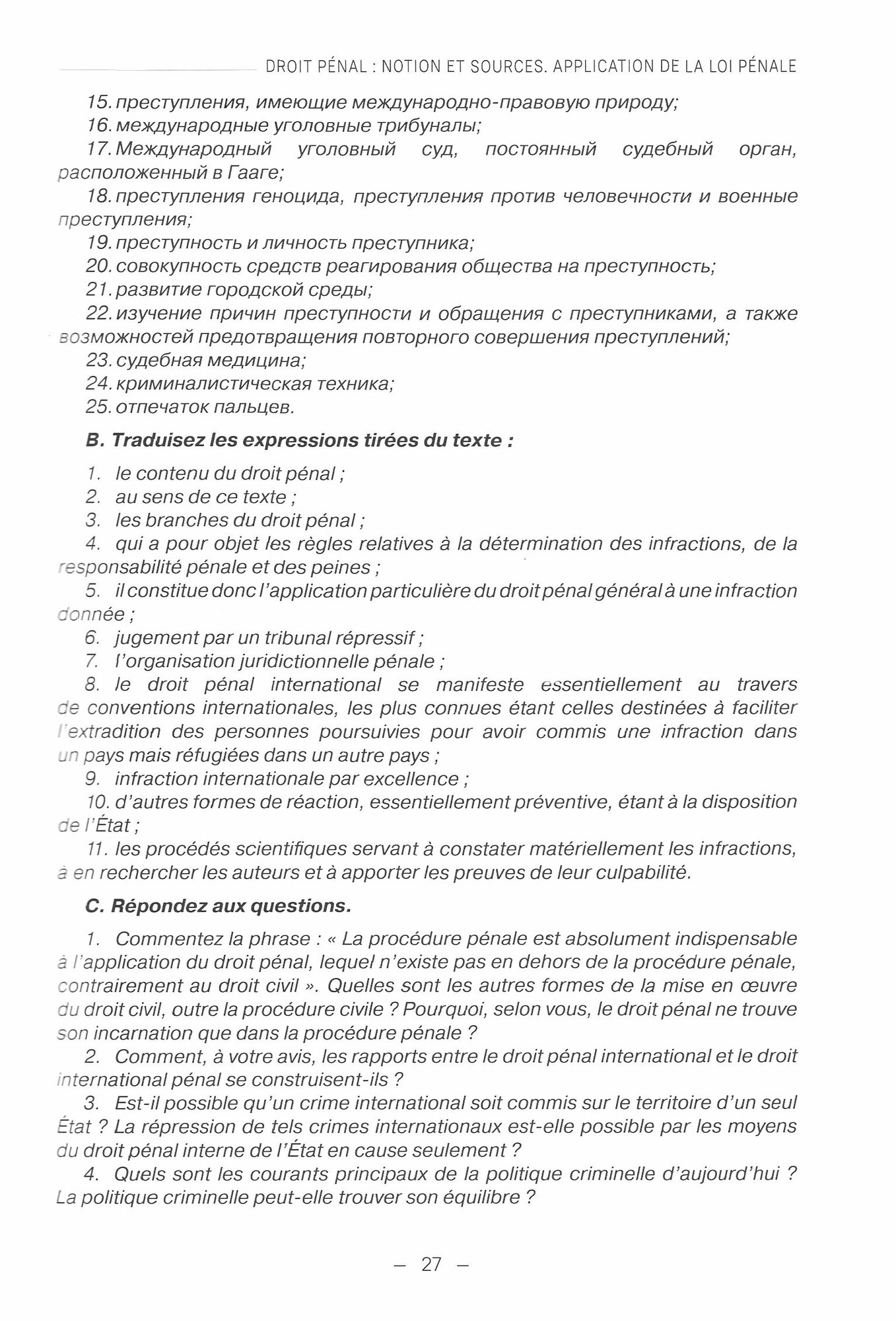 Учебник открывает учебно-методический комплекс по французскому языку в рамках серии "Международное сотрудничество в сфере правоохранительной деятельности и уголовной юстиции". Он предназначен как для формирования профессиональных компетенций в области французского языка уголовного права, так и для поддержки развития формируемых в рамках специальных курсов профессиональных компетенций в сфере дисциплин антикриминального цикла.