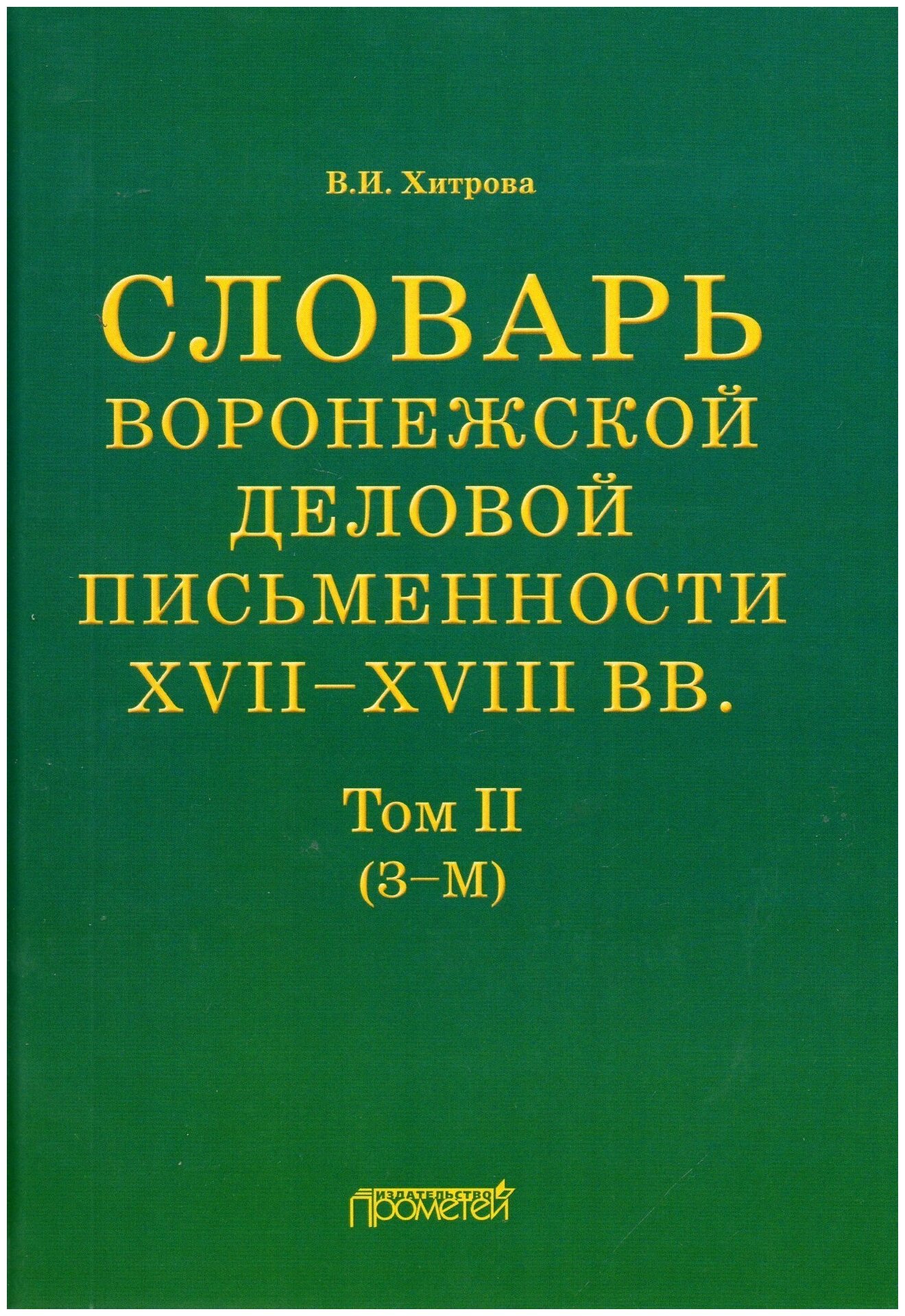 Словарь воронежской деловой письменности XVII-XVIII вв. Том 2 (З–М) (Валентина Ивановна Хитрова); Прометей, 2022