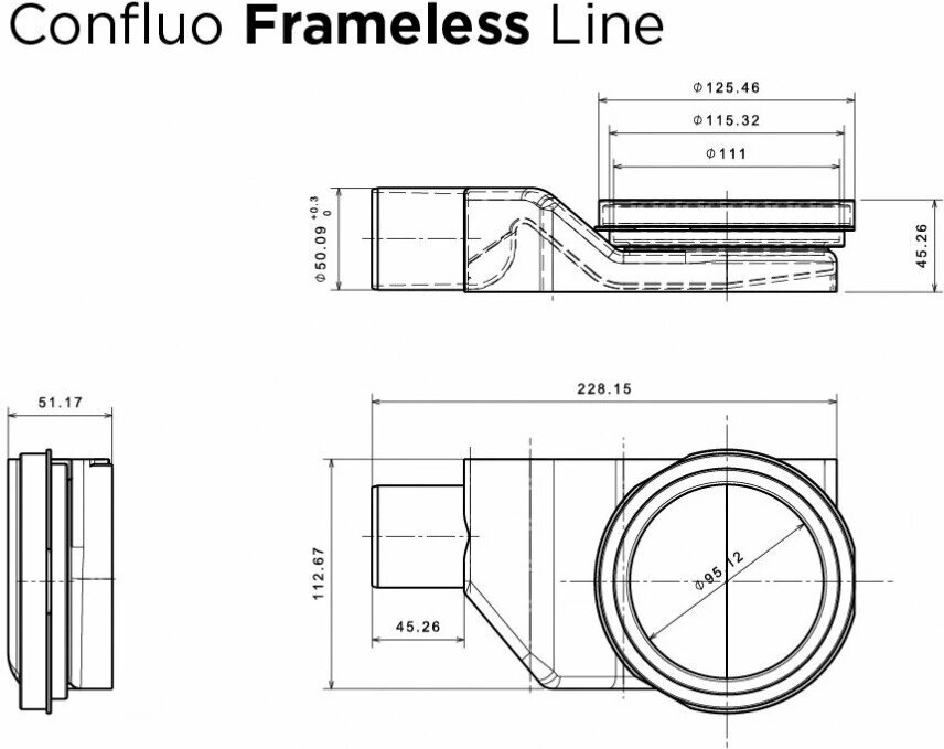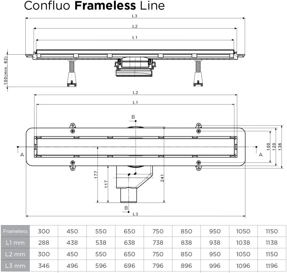 Модель: Confluo Frameless Line 300 13701259 с двухсторонней решеткой Черный матовый / полая под плитку