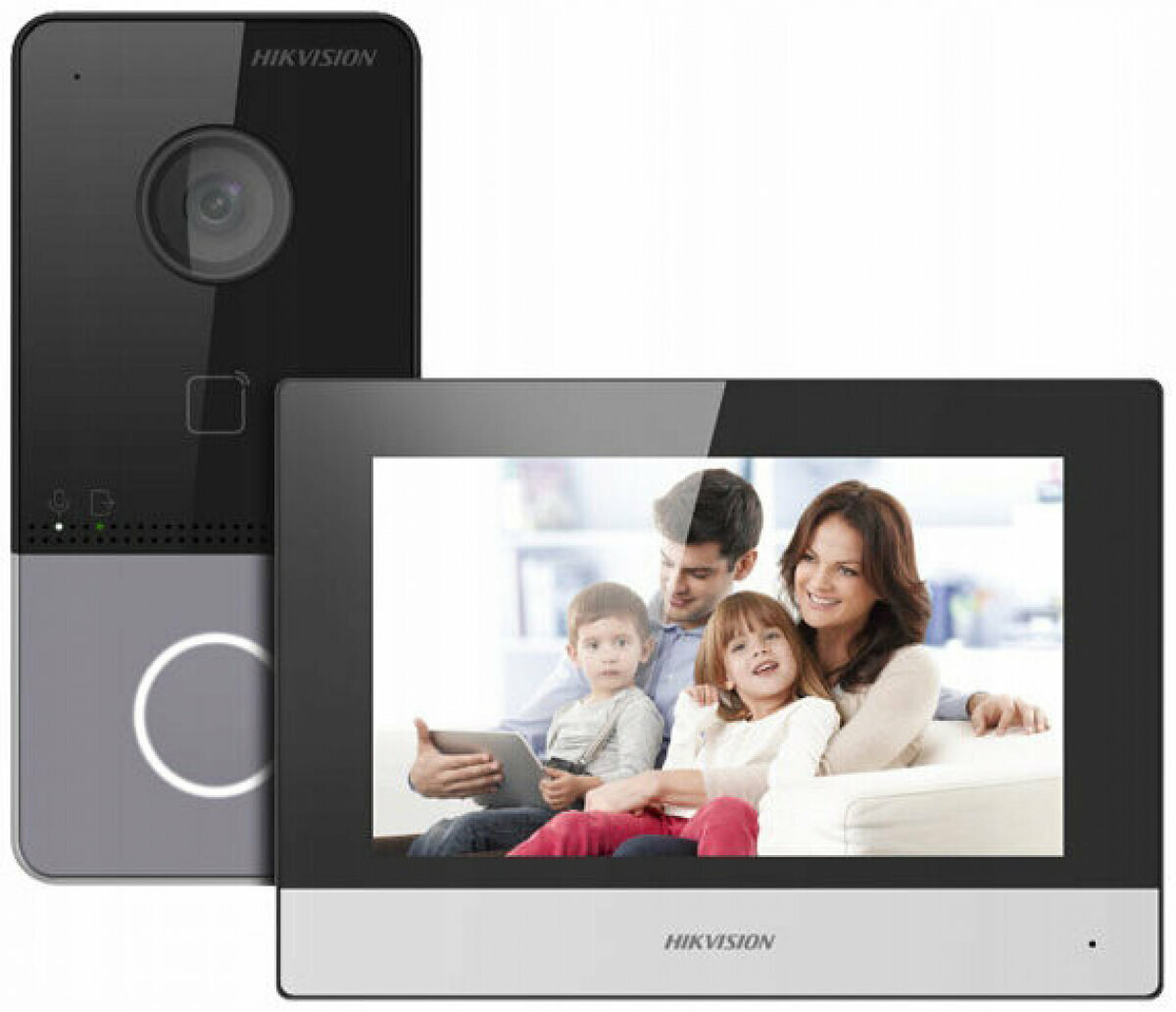 - Комплект IP видеодомофона Hikvision DS-KIS603-P (IP монитор DS-KV6113-WPE1 + панель DS-KH6320-WTE1)