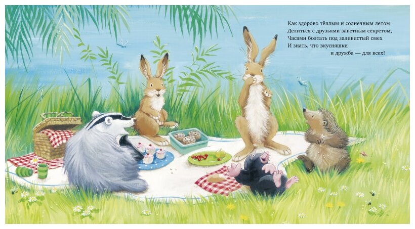 Ребенок будет в восторге не только от коротких стихотворений, но и от картинок Джейн Чапмен, английской художницы и писательницы, которая покорила сердца тысяч читателей. Уже больше 20 лет она занимается иллюстрированием детских книг, и каждая из них становится бестселлером. Детально прорисованные персонажи — кролики, ежики, еноты, на каждом из которых можно разглядеть буквально каждую шерстинку, — покорят и детей, и взрослых.