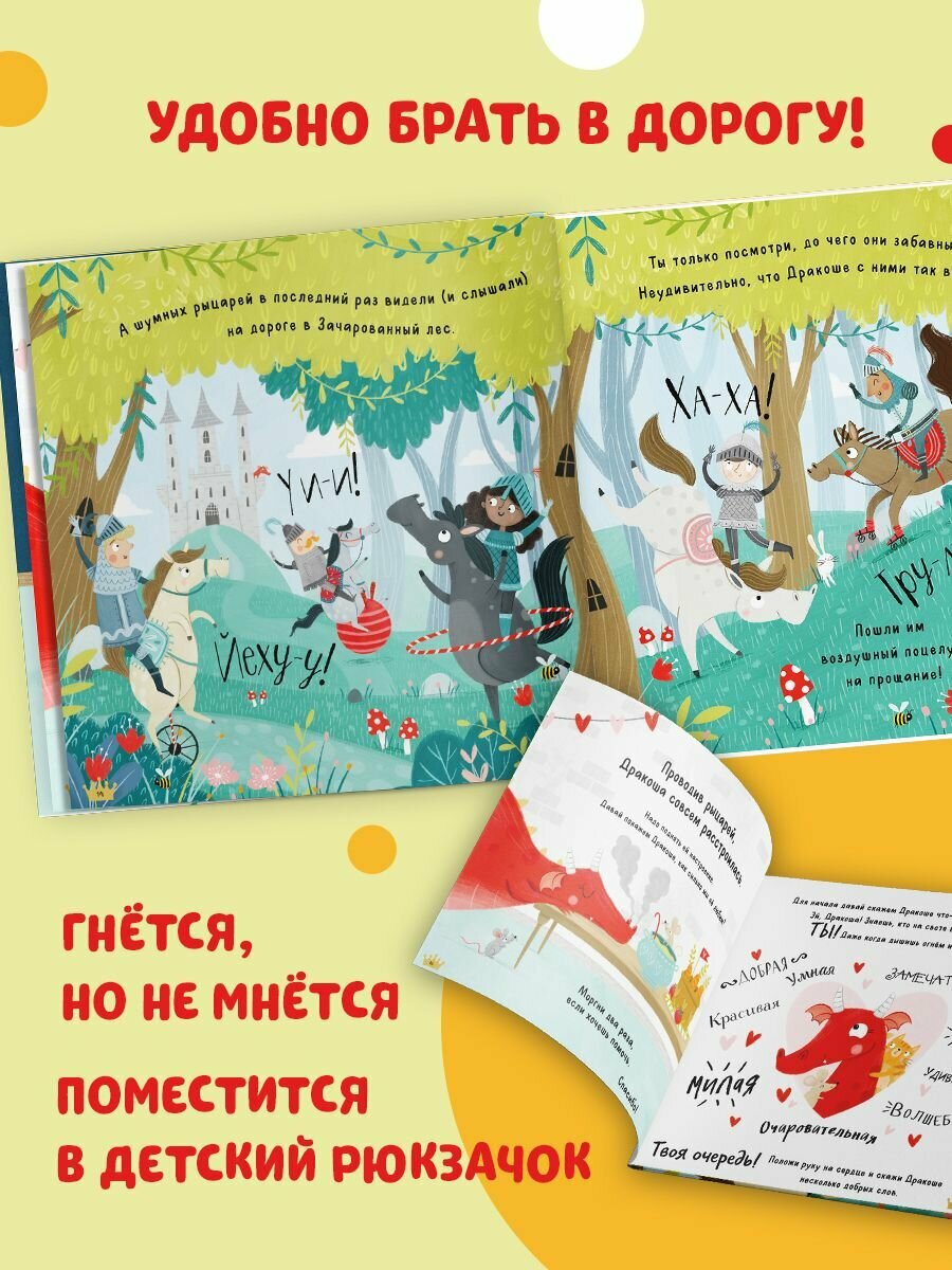 «Все любят дракошу!» — это книжка-картинка, которая приглашает малыша в сказку и с помощью заданий и вопросов, вплетенных в текст, помогает ему стать частью любимой истории.