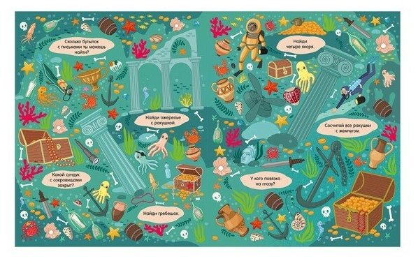 «Оторваться от этой книги просто невозможно: у художника Анастасии Дружининской даже осьминоги и кальмары получаются милыми и интересными. В книге собрано 800 предметов для поиска, так что каждый раз вы будете находить что-то новое!» — редактор Clever.