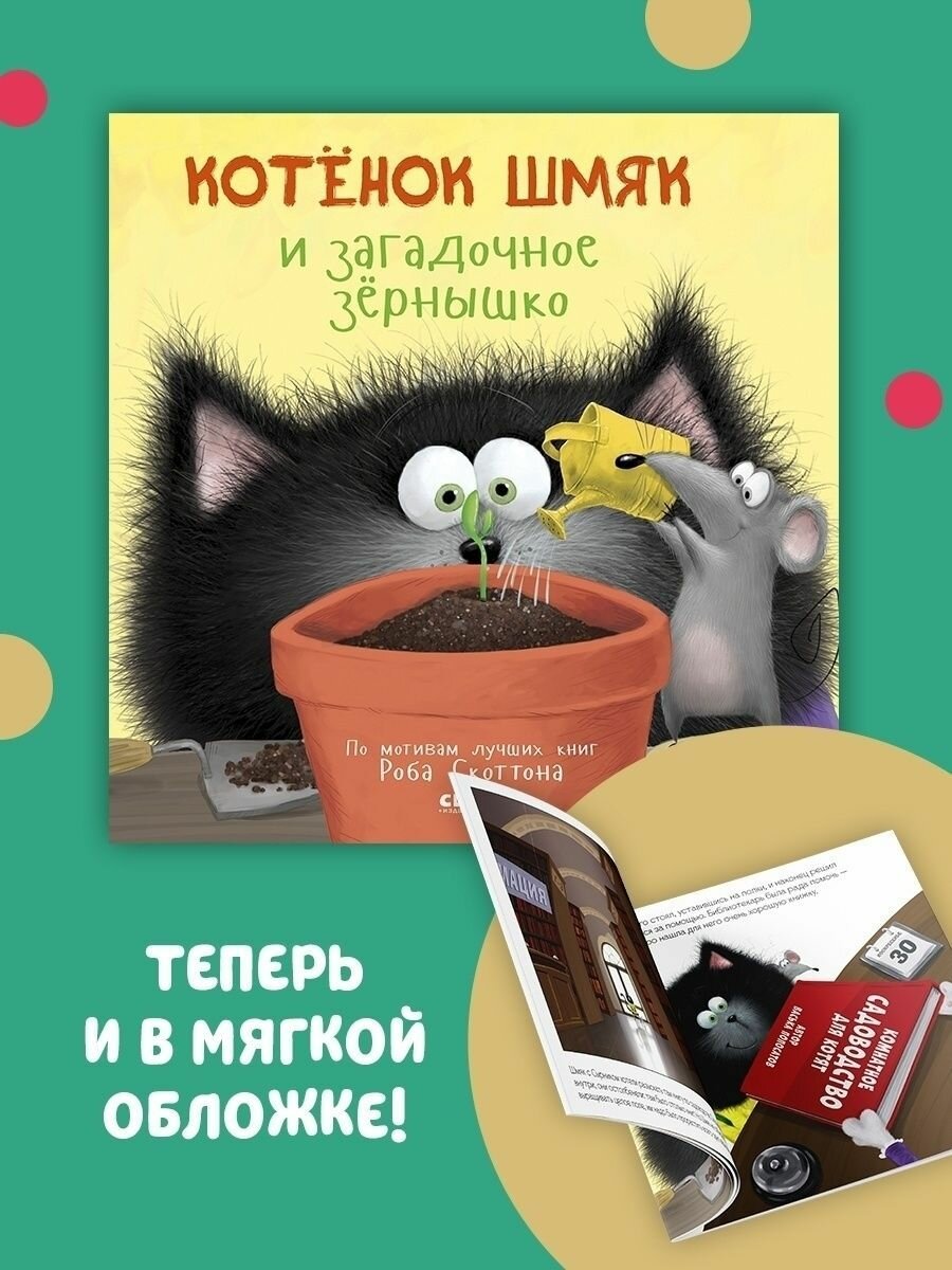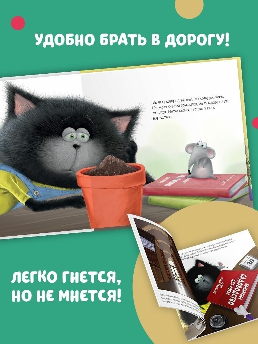 садовода, старательно следовал инструкциям… Осталось самое сложное — дождаться! Что же вырастет из зёрнышка? Шмяк — один из самых любимых героев маленьких читателей, и не случайно. Ваш малыш будет расти и учиться вместе с этим пушистым котенком, в которого просто невозможно не влюбиться.