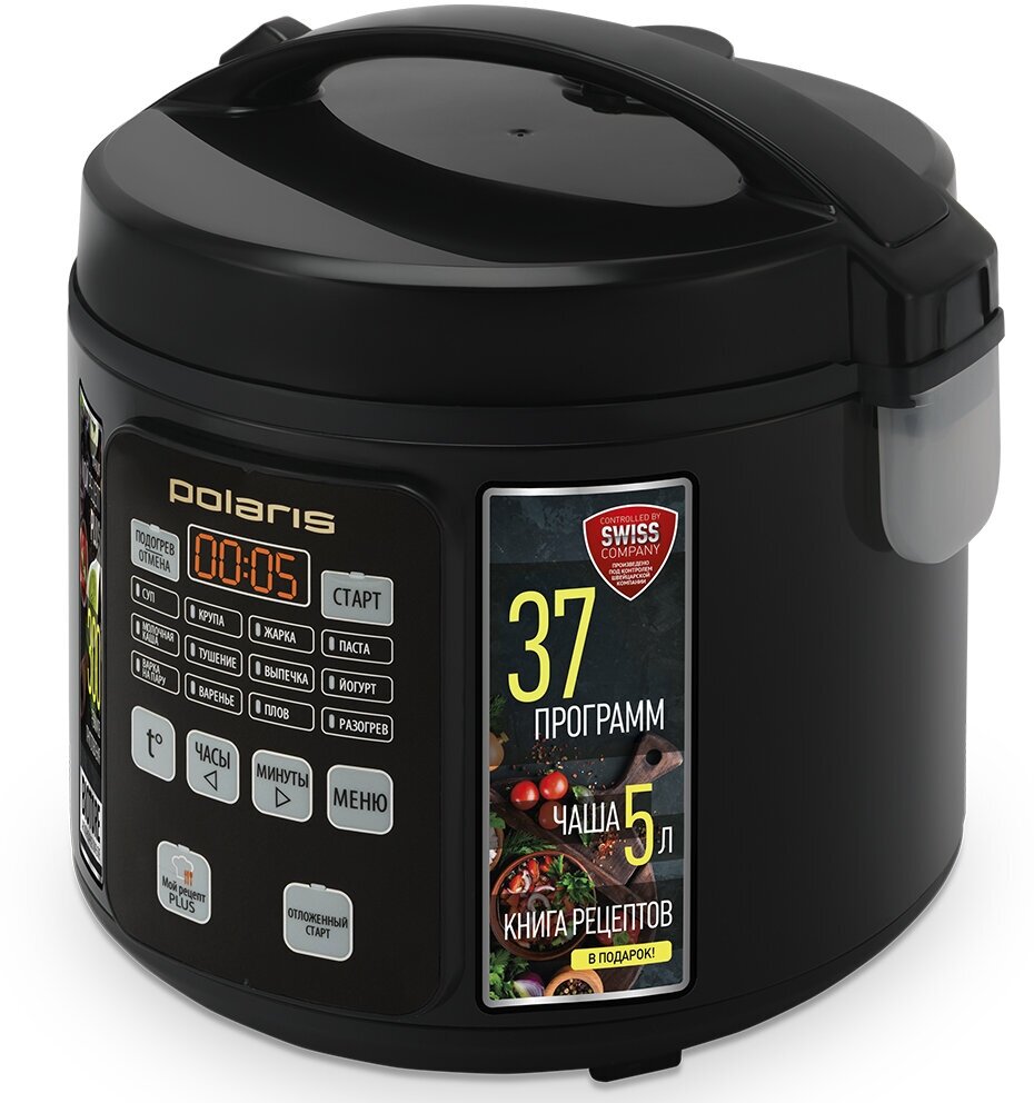 Мультиварка Polaris PMC 0567AD – модель для большой семьи. Ее главной особенностью является большая чаша объемом 5 литров с антипригарным покрытием. Выполнена в черном цвете. Устройство поможет сделать питание разнообразным. В Polaris PMC 0567AD только автоматических программ тридцать семь. Устройство умеет варить, жарить, тушить и даже выпекать десерты. Можно приготовить плов, суп, крупу, пасту, йогурт, варенье, кашу и многое другое. Кроме того, функция «Мой рецепт» позволяет внести и запрограммировать свое собственное любимое блюдо.