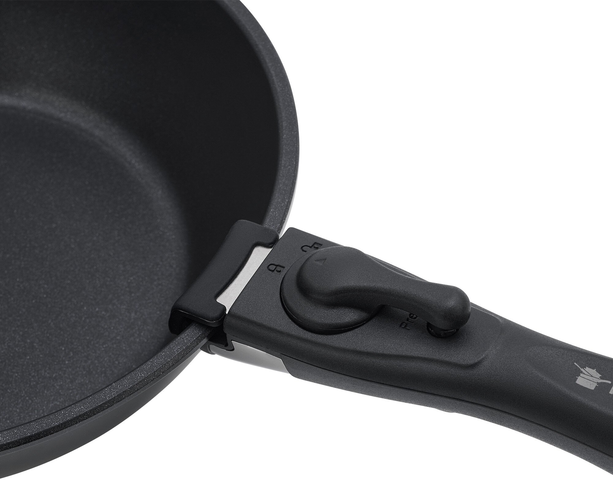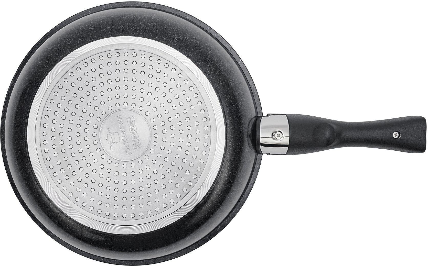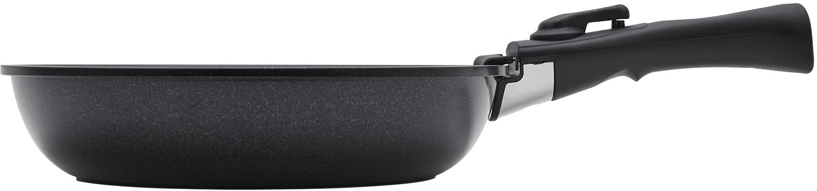 Эргономичная бакелитовая съемная ручка с двойной защитой не нагревается и не скользит.