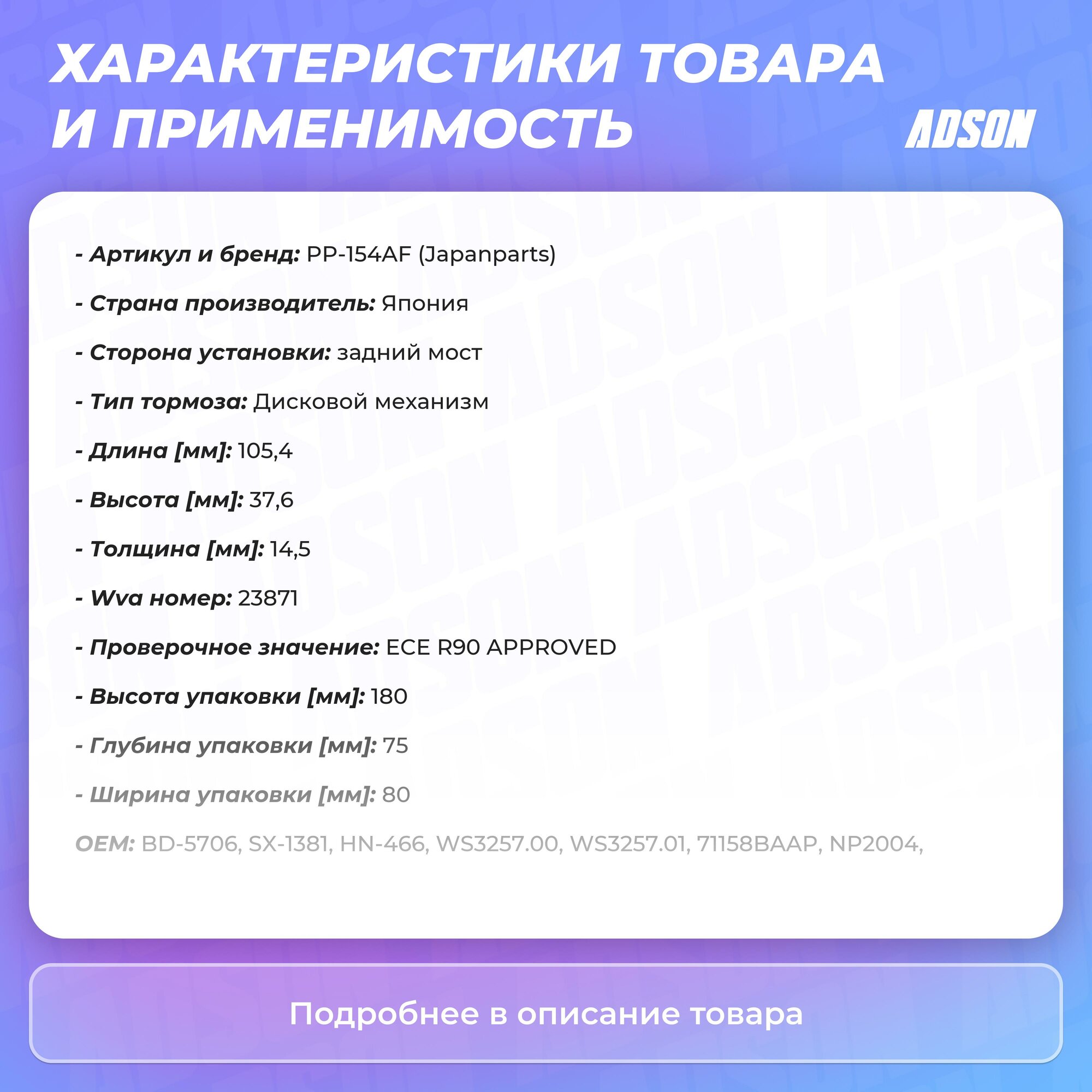 На сегодняшний день товар «Тормозные колодки JAPANPARTS дисковые задние PP-154AF» можно купить с кешбеком в 1 магазине: Яндекс.Маркет