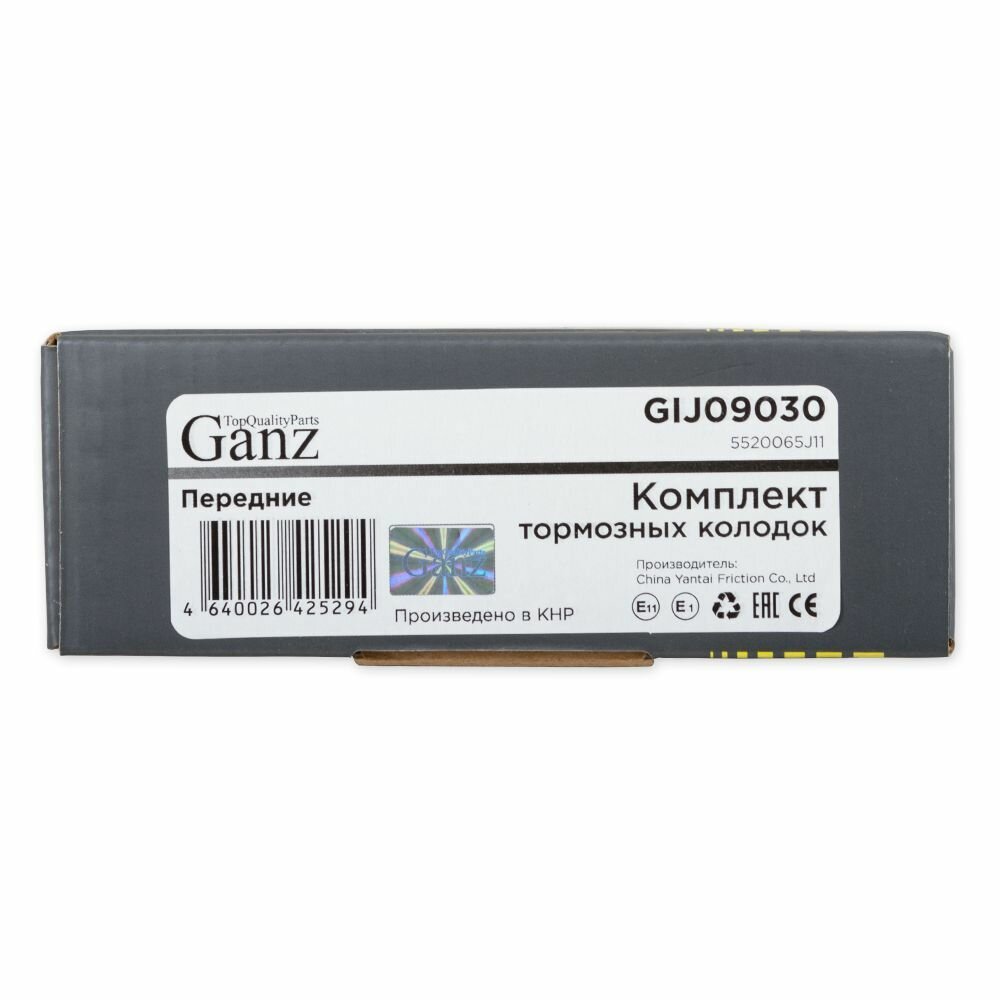 Тормозные колодки GANZ дисковые передние GIJ09030