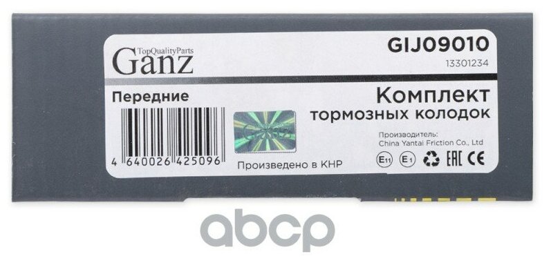 Сервис сравнения цен СкидкаГИД предлагает сравнить цены на товар «Тормозные колодки GANZ дисковые передние GIJ09010»