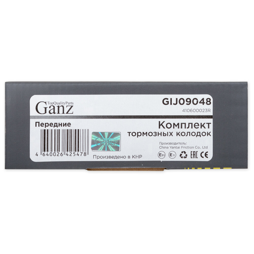 Тормозные колодки GANZ дисковые передние GIJ09048