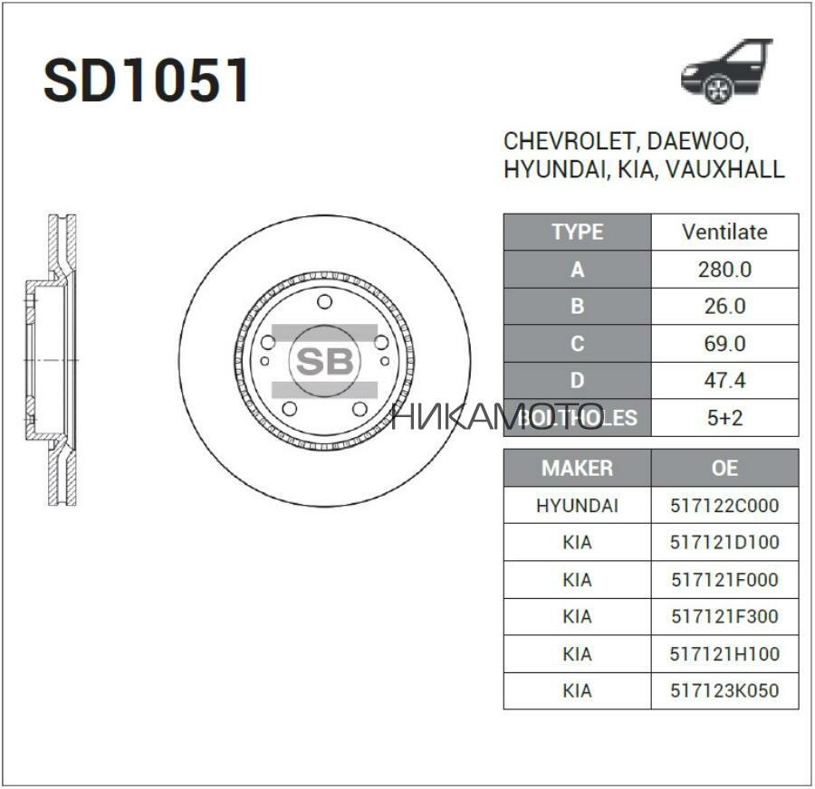 Сервис сравнения цен СкидкаГИД предлагает сравнить цены на товар «Тормозной диск SANGSIN BRAKE передний SD1051»