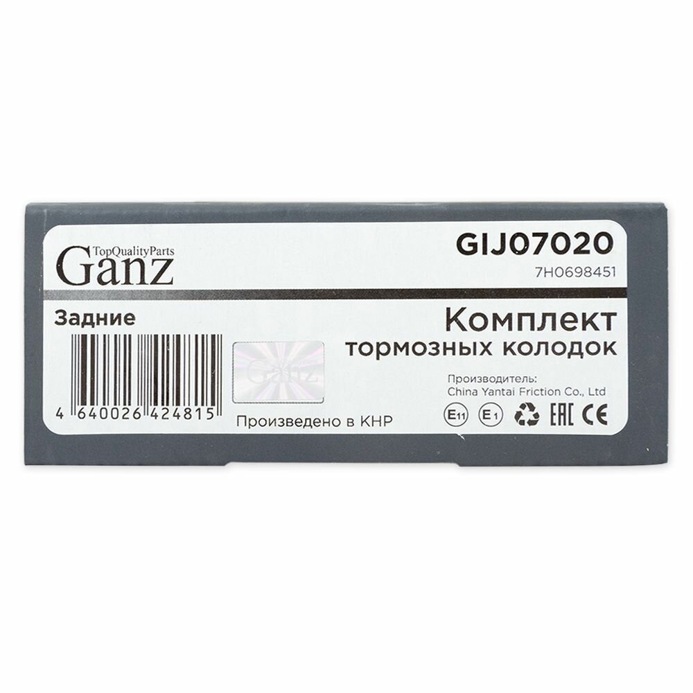 Тормозные колодки GANZ дисковые задние GIJ07020