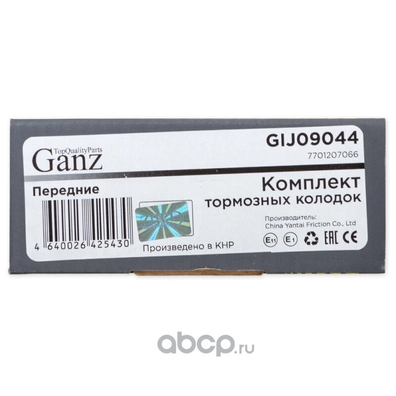 Сервис сравнения цен СкидкаГИД предлагает сравнить цены на товар «Тормозные колодки GANZ дисковые передние GIJ09044»