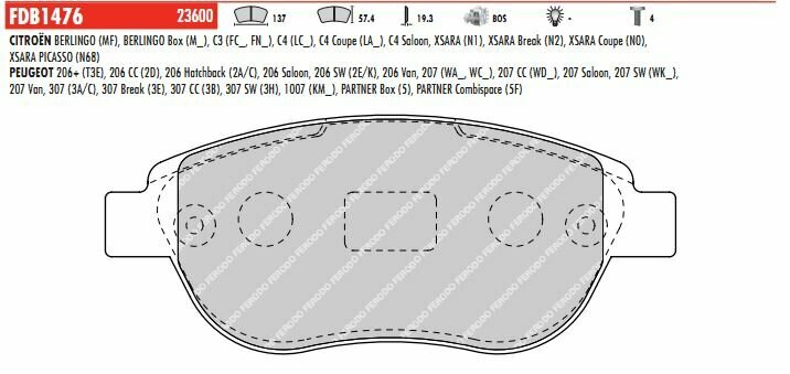 | Модель автомобиля | C4; Xsara; 1007; 206; 207; 307; Partner |